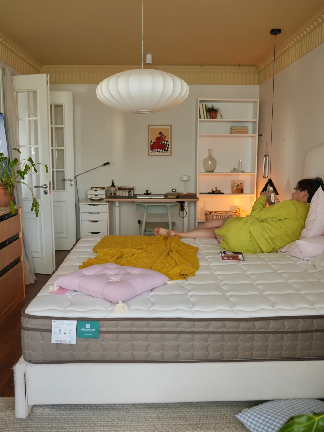 我的卧室🛏️ 是安稳的,舒展的,轻松的 虽然宅家生活 但每天伏案工作的时间并没有变少 椅子上一坐,就是半天 腰部和肩颈都僵硬酸胀的很 能躺下来休息,好好被哄睡 就是重启生活松弛感的关键一步 这款雅兰深睡·尊享Pro床垫 采用的是1500+Smart微核蓄能簧 简直是承托大力士 肩腰腿都有了着力依靠点, 肩膀有弹簧轻轻顶着侧睡不麻, 老腰悬空处自动加码承托,腿窝填得严实不抽筋。 怎么翻来覆去,都很放松舒适 边缘则是4D降扰防塌软边框 平时靠在床边刷个手机或是吃吃宵夜 也不用担心塌陷滑坡影响睡眠 它表面的Intense深睡科技面布很特别, 像以前妈妈的摇篮曲 抗静电无打扰,身体慢慢关机陷入深度睡眠 很绝的是凝胶记忆绵+进口天然乳胶这对CP! 乳胶层的柔感承托让身体就像跌进草莓蛋糕芯, ☁️腰臀被温柔托住; 凝胶记忆绵仿佛吸走生活疲惫,释压性很不错; 夏天的晚上睡出薄荷冰淇淋质感,能一觉到天亮🌙 而能分期付款是成年人的快乐暗号: 天猫国补+花呗三期免息,在优惠的同时,还可以分期,花部分的钱,让好睡眠能轻松到手 余款买买香薰蜡烛,好心情加倍 - 雅兰雅兰床垫上淘宝领国家补贴雅兰床垫好不好雅兰床垫哪个系列最推荐雅兰有度雅兰有度床垫雅兰有度旗舰Pro床垫乳胶床垫弹簧床垫护腰床垫床垫国补雅兰618补不停花呗分期免息家的松弛时刻彩色的家重启生活松弛感