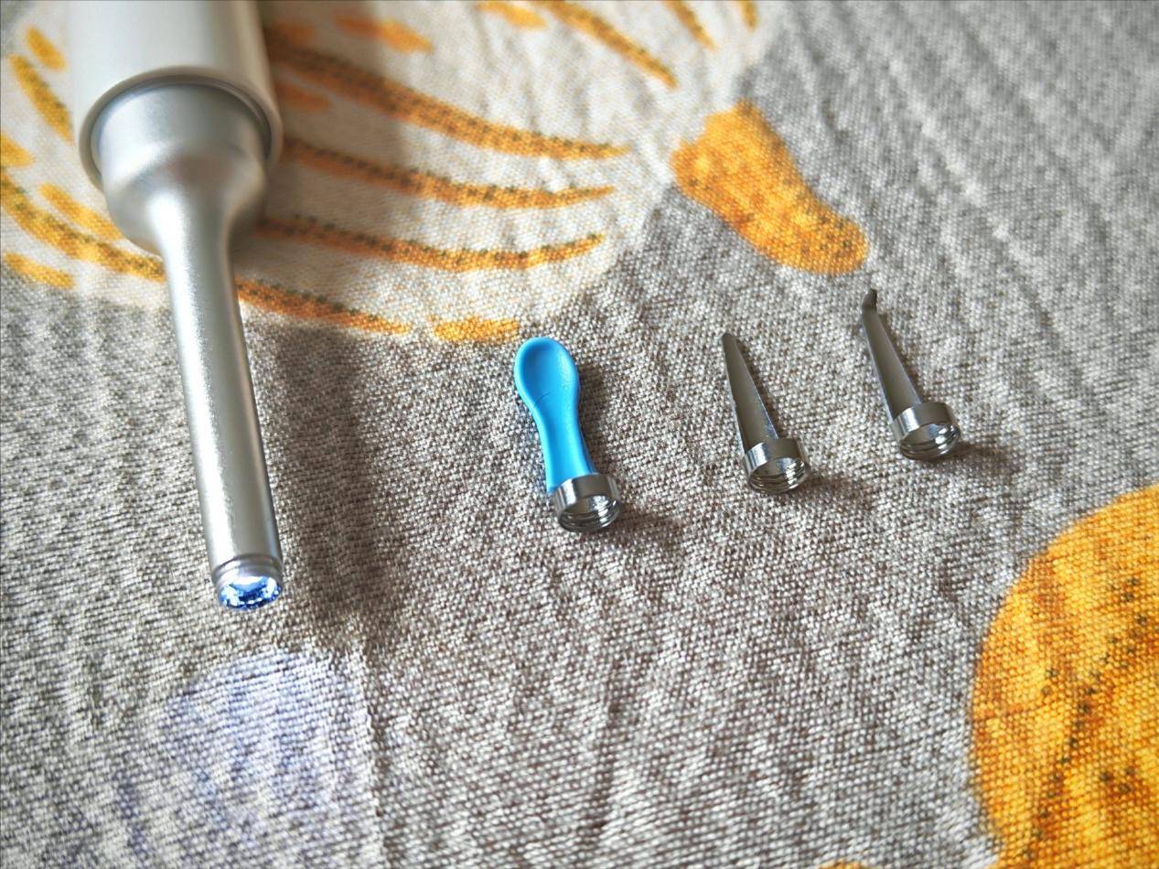 上手就能感觉到机身偏重,手感扎实,握在手里很稳,不容易晃动。耳勺头采用PC材质,偏硬一些,这让它在清理较顽固的耳垢时更干净利落。不过操作时要注意力度,轻轻用力比较安全,否则容易刮到耳道。