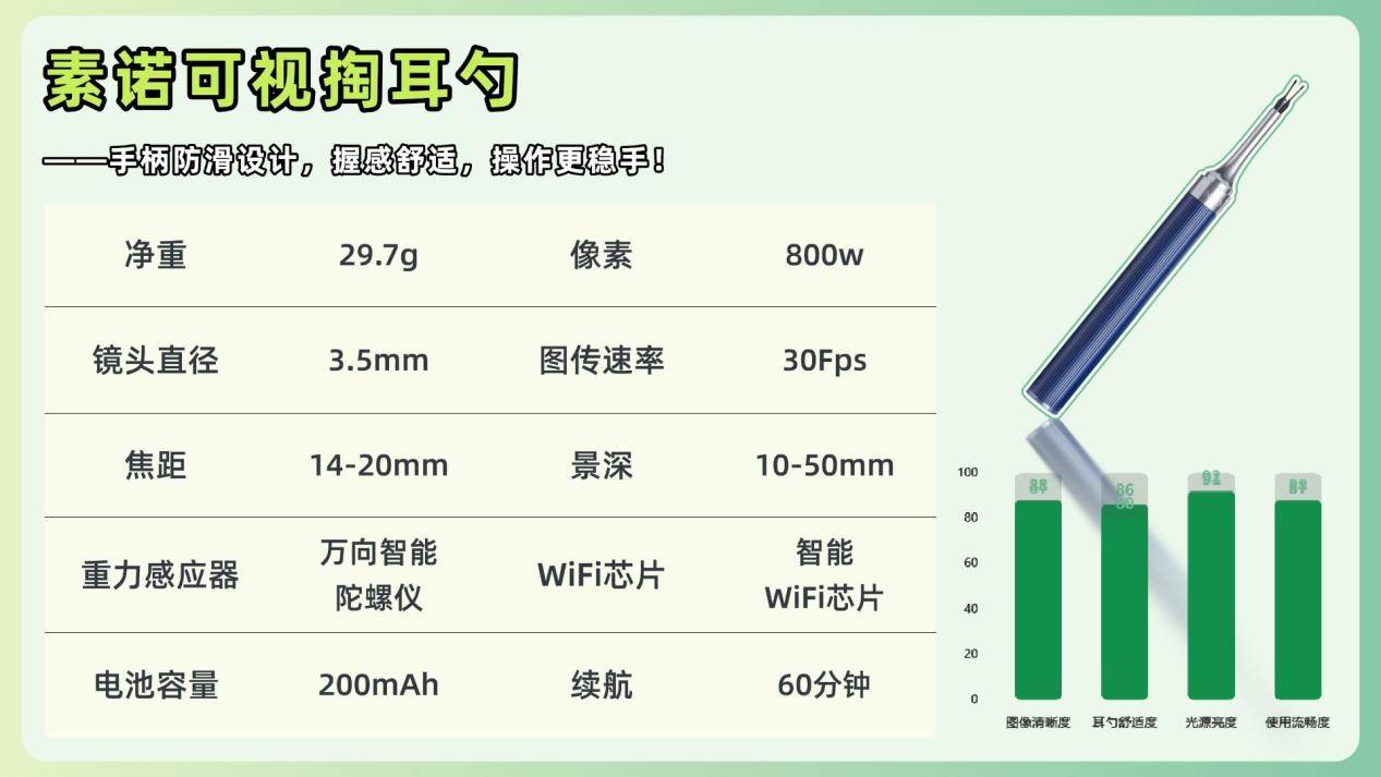 操作体验方面整体顺畅,配套的APP界面清晰明了,上手几分钟就能熟练操作。偶尔在快速切换镜头或者调整角度时,画面可能会有轻微延迟或卡顿,但不影响实际掏耳操作。总的来说,这款素诺可视掏耳勺在外观、手感和功能上都有不错的表现,日常家庭使用完全够用,还兼顾了便捷和卫生。