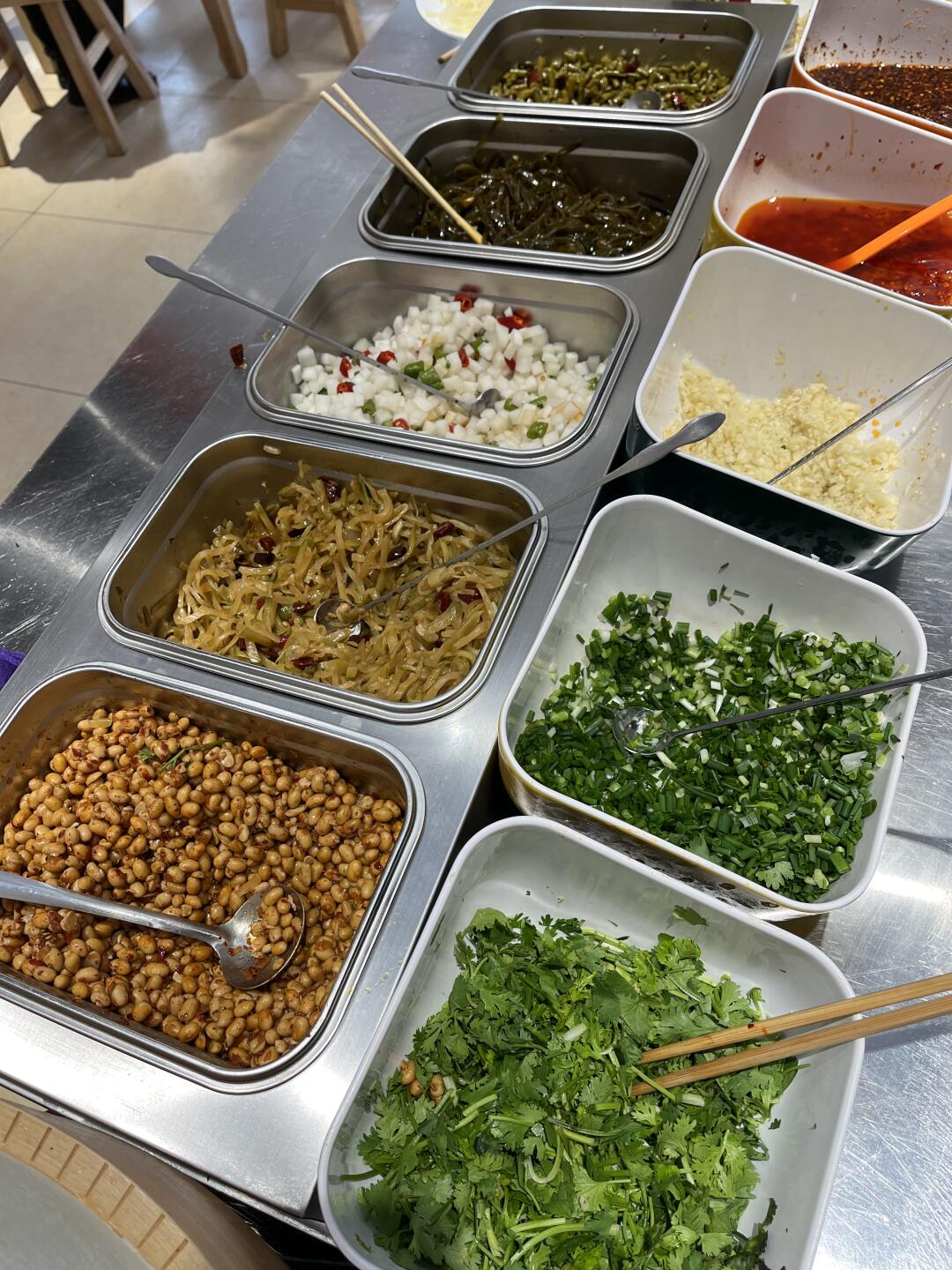 他家有很多免费小菜,如土豆丝、酸豆角、榨菜、萝卜丁、海带、豆芽等,以及蒸玉米、红薯,一共16种,可随便加。另外,要人惊讶的是,豆浆都可免费供应。怪不得在我吃牛肉粉的当儿,抬头一看,可见鹤发童颜者,上班族,小情侣,父母带孩子一起来过早!一碗牛肉粉,朴实无华,人人吃得起,于斯可窥见“天下大同”呀!(舒怀)