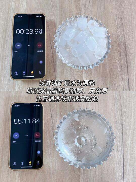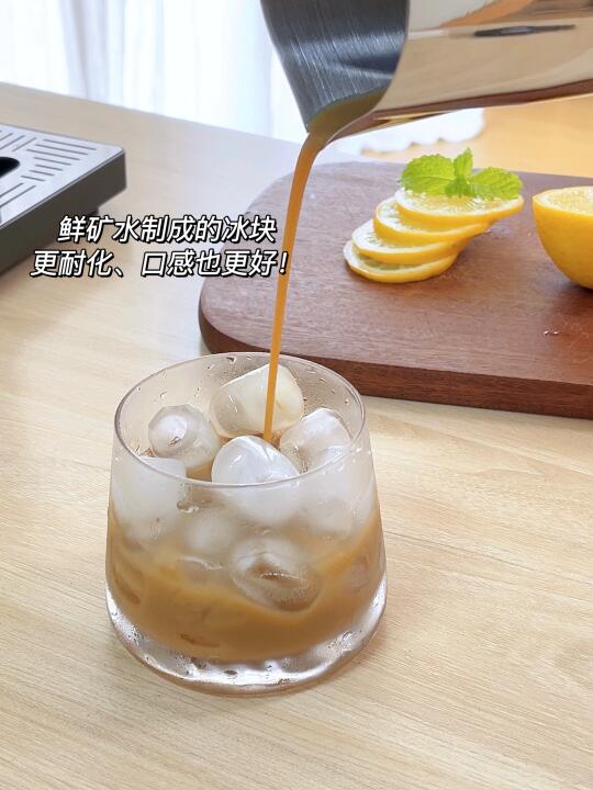 因为它直接就是矿泉水制冰,所以冰晶结构更细腻、无杂质,比普通冰块更透亮耐泡,还经过了UV杀菌,🧊冰块更洁净无异味。