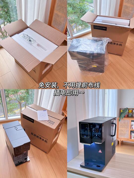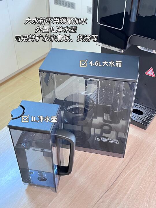 台式免安装,开箱插电即用!外挂了一升的净水箱,能随时拆下用,煲汤、煮饭都能用矿泉水!