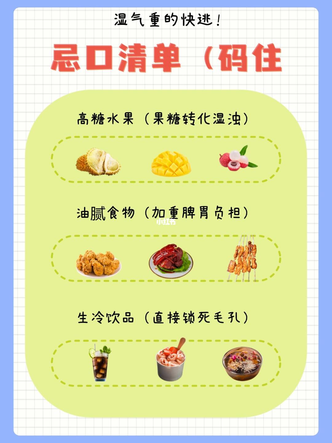 高糖水果:芒果、荔枝、榴莲(果糖转化湿浊)