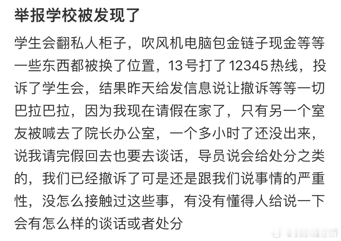 陨落心皇 44 2025-06-11 18:33 继续投诉,一口咬定丢了多少东西,有些能提供证据的尽量提供,学校都是欺软怕硬的,一旦你怂了你的处分肯定跑不掉,给你行政处分,你刚到底拿刑事处分对打,反而会有一线生机