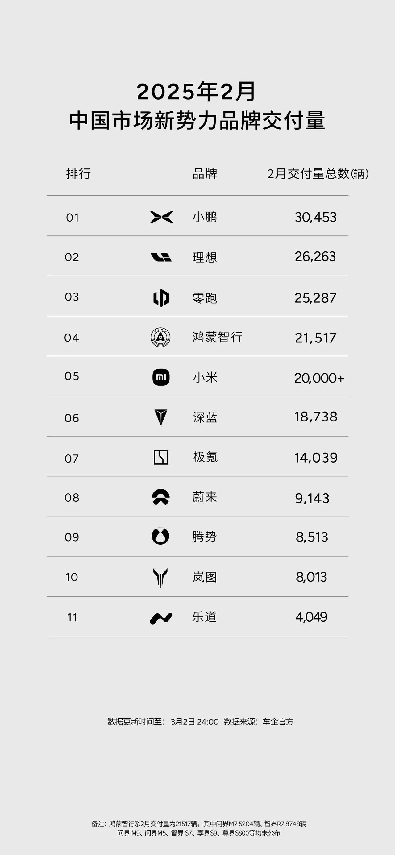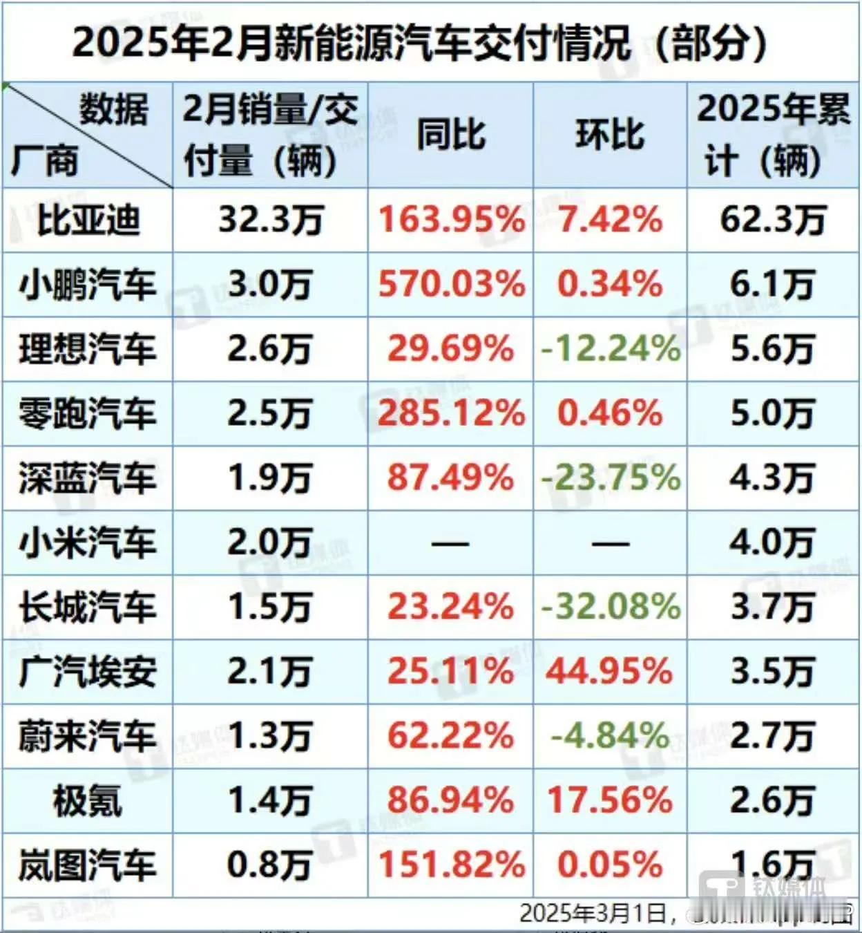 周一喜报,厉害了小鹏汽车[赞][赞] 小鹏汽车凭借2月交付量同环比双增长、同比增速达 570% 的惊喜表现,蝉联新势力车企交付量第一。小鹏连续2个月新势力销量第一 作为本月新势力阵营中,唯一一家交付量破3万的车企,小鹏汽车在势头向上的同时,仍旧坚持延续“0首付+5年0息”金融政策,最高贴息5.7万元,展示了小鹏汽车坚定推动科技普惠、智驾普惠的长期主义,将“油智同价”进行到底的决心。小鹏推出行业唯一5年0息0首付政策 同时,2025款G6已焕新登场,何小鹏今日发布微博称,全新小鹏 G6将在下周正式发布,并透露上周末新款 G6 到店后,十分火爆,首月产量非常紧张,正在想办法解决。相信新款G6上市将拉开AI新产品强劲周期序幕。