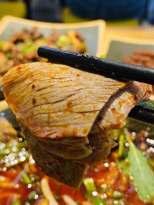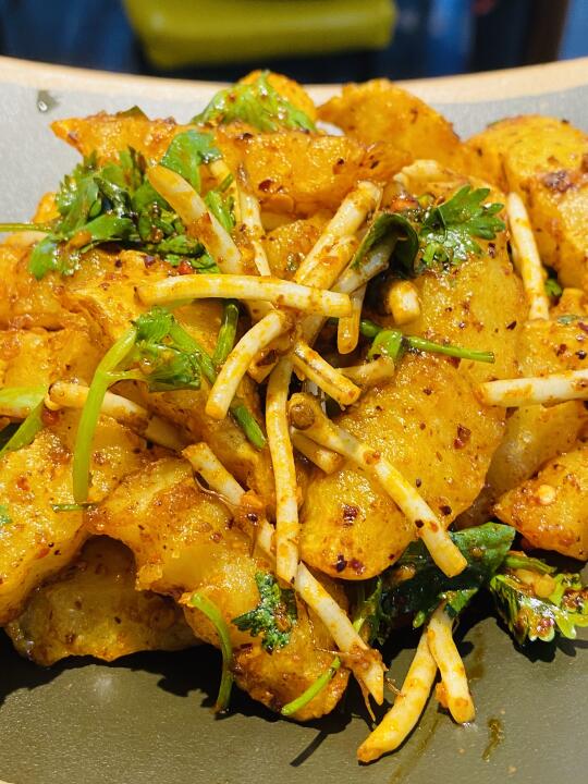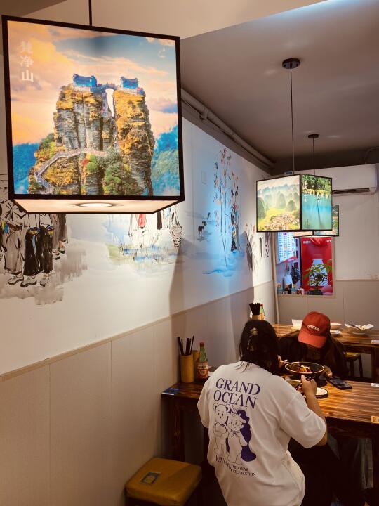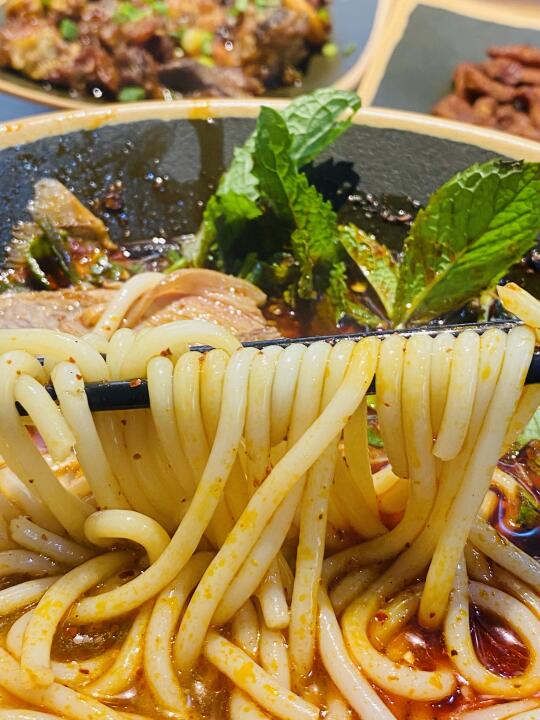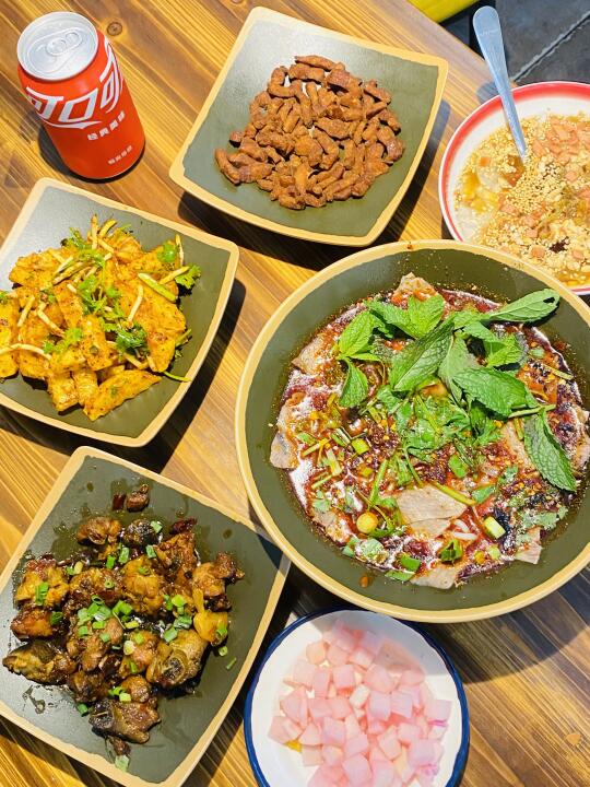 🌊去年去了趟贵州,不但风景优美,对那里的小吃更是念念不忘,回来后四处找寻,功夫不负有心人,终于在新街口这条巷子里找到一家超地道的羊肉粉!!! 🐐招牌遵义羊肉粉: 羊骨肉精心熬制的汤底,麻辣鲜香!配了薄荷叶,很是清爽!羊肉秘制去膻、分量十足、薄切入口即化!米粉是略粗的那种劲道且不失粉糯,香迷糊了! 🐷贵州脆哨: 五花肉丁经多道工序制成,金黄酥脆、满口留香!!! 🐓贵州辣子鸡: 不似川渝那种倍儿干的,而是油油润润的口感,鸡腿肉嫩而入味!👍 🍟狼牙土豆: 土豆炸得外酥里糯,拌上折耳根,带来无比酸爽的体验! 🥣小店自己腌制的酸萝卜丁酸甜可口,令人胃口大开!下回再来!