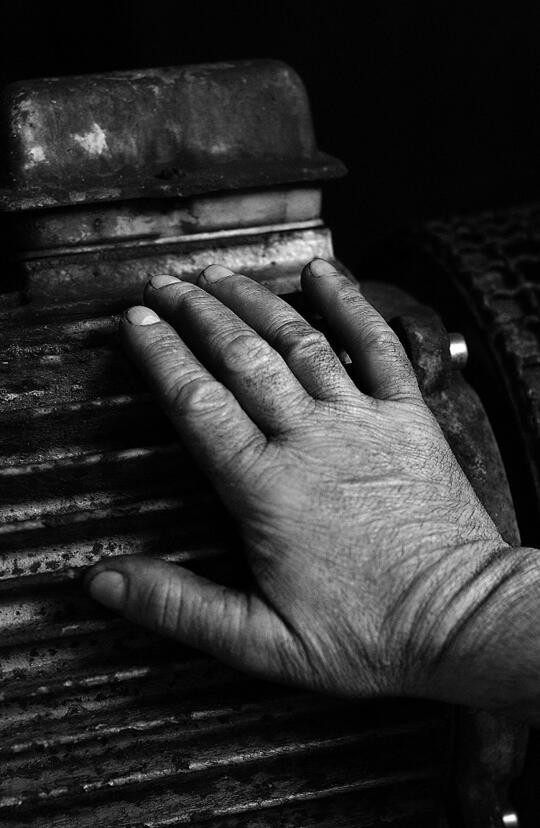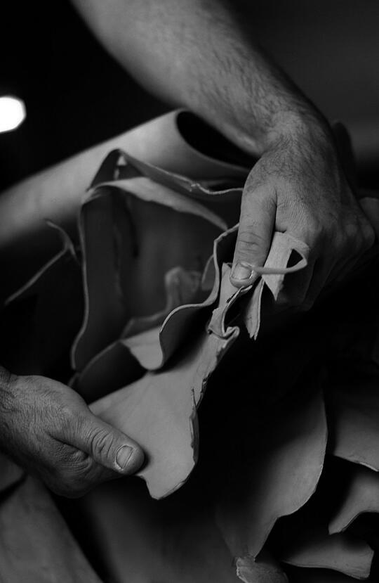 粗粝的掌纹里,藏着时光与经验的刻痕; 指节之间,沾染着植物单宁的温度与气息。 这些手,曾无数次触摸湿润的原皮, 在滚桶边、阳光下、案台前, 将一张张无形之物,赋予温度与生命。 他们不言语,却能用一双手, 讲述关于耐性、敬意与传承的故事…