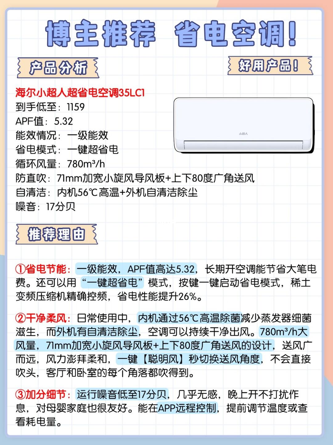 综合多方面剖析给大家推荐这款:海尔小超人超省电空调35LC1!