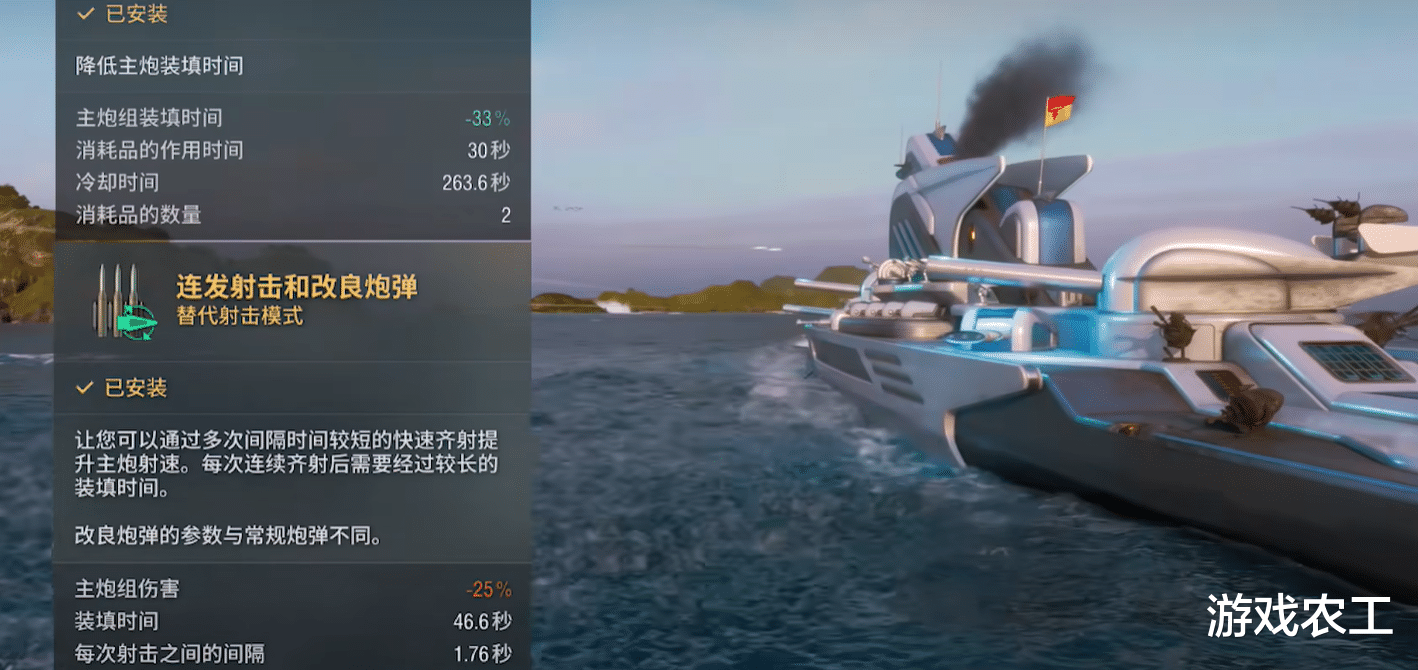 为了平衡强度,替代射击模式下炮弹标伤会降低25%,对那些装甲厚重的“铁王八”压制力稍显不足。可即便如此,弹夹模式下2轮AP弹打出去的总伤还是比常规模式高出50%以上,距离够近的时候,照样能展现出强大破坏力。而且维多利亚还配置了主炮再装填消耗品,能在30秒内降低33%主炮装填时间,配上射速插后,差不多20秒就能打4轮,要是抓到敌舰侧身,基本可以秒杀。