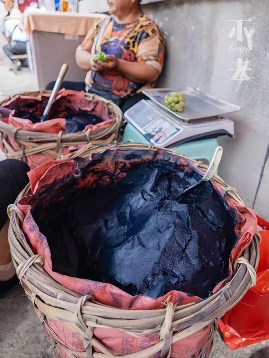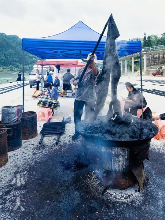 纺纱织成布后,经蓝靛、白酒、牛皮汁、鸡蛋清等混合成的染液反复浸染、蒸晒、槌打而成,千锤百打后,布纹紧密,结实耐用,闪闪发亮。