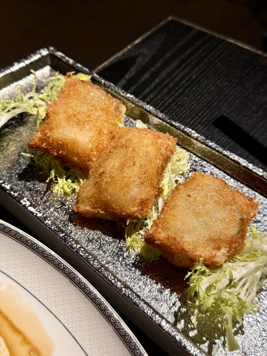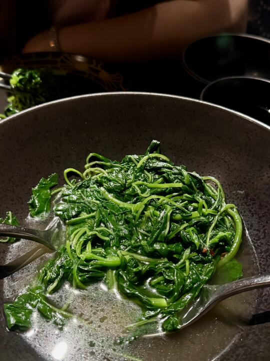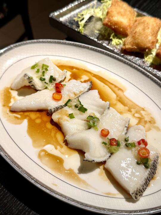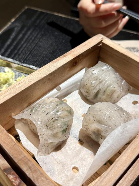 姐妹历荐一定要带我来试试她吃了七八年的点心店 有别于老牌街边小店 这家装修环境更好 整体黑色调很高级 当然价格也高出普通点心店很多 两个人晚餐随意吃了点 没点太多菜 点的五道都超级好吃 云南黑菌手撕脆皮鸡很特色 (可以点半只) 藤椒蒸黑鳕鱼非常好吃 鸡枞菌鳕鱼卷让我这个不爱油炸食物的人都爱了 黑松露虾饺也不错 上汤米线才是最最惊艳我的 蔬菜做得如此好吃却不油腻的这是独一家 我把汤都喝完了🤣 下次人多点来还想试试其它菜品 买单两个人一共HKD891 确实不便宜
