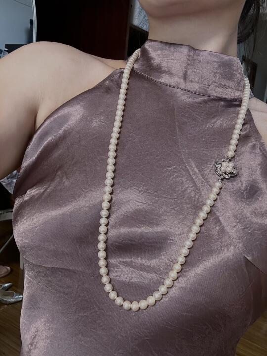 淘到的日本中古珍珠。珠光特别好,连扣子都做得很精细。 还是80cm的长度,可以做单层长链搭配,也可以缠绕2圈当choker。属于是可利用度很高的项链,太爱珍珠了,永远为珍珠心动💓
