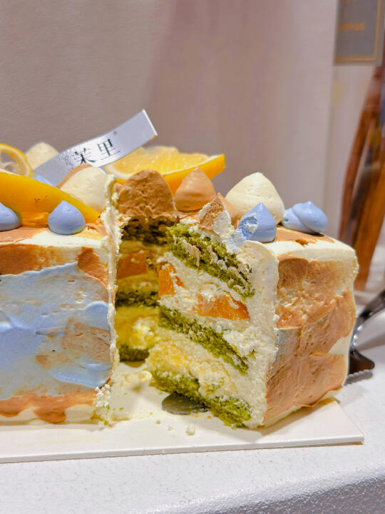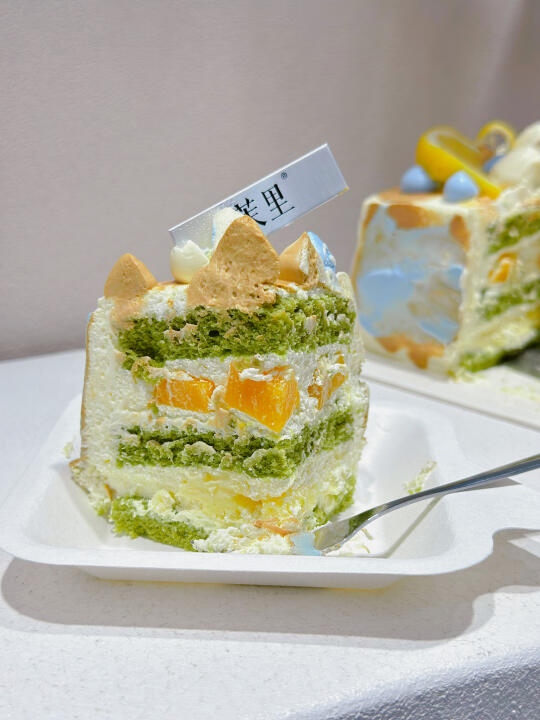 MOMI空气茉莉…在青岛开了首家门店 之前在别的城市吃过一次就念念不忘 总算在家门口也能吃到了[派对R] 斑斓味的蛋糕胚深得我心,终于在离开三亚后,又吃到了我心心念的斑斓味。搭配了柠檬的奶油,很清爽,半糖的动物奶油很轻盈,超适合夏天。夹层是大颗粒的新鲜芒果,超过瘾。 过生日…纪念日…闺蜜小聚…下午茶…都是很不错的选择。