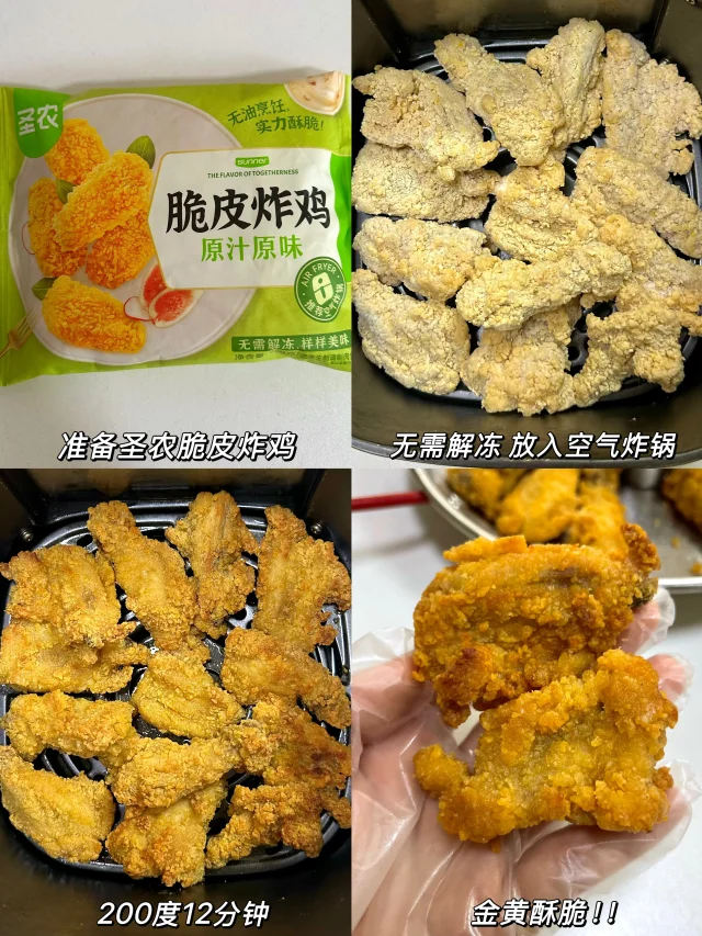 香酥脆嫩!满屋飘香一口下去还爆汁😭现烤的炸鸡真的比外卖脆脆脆!好吃又省事 不用解冻不用刷油 想吃的时候直接来一袋,扔进空气炸锅200度12分钟就搞定,巨巨巨方便!