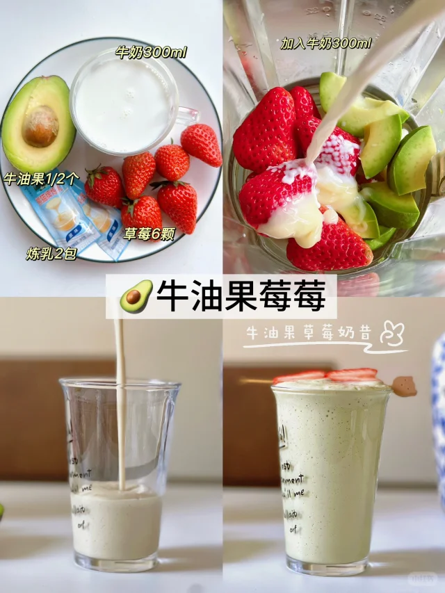 牛油果1/2个+草莓6颗+牛奶 300ml+炼乳24g