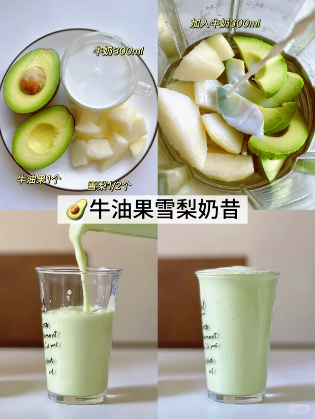 牛油果1/2个+雪梨1/2个+牛奶 300ml