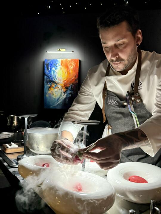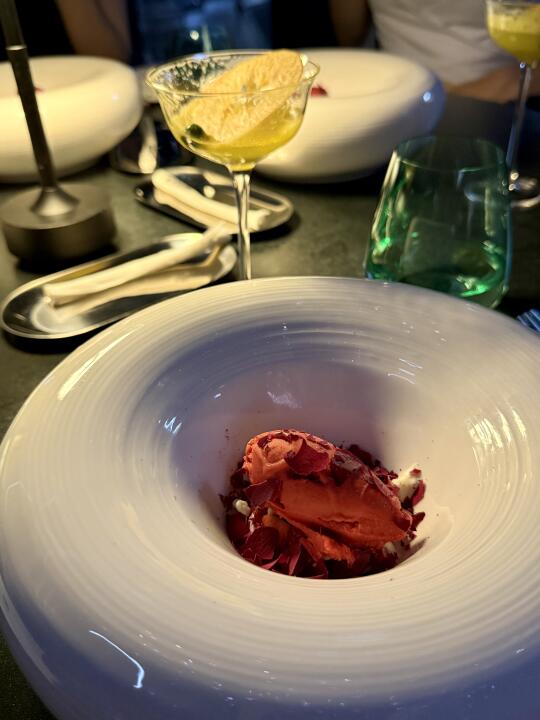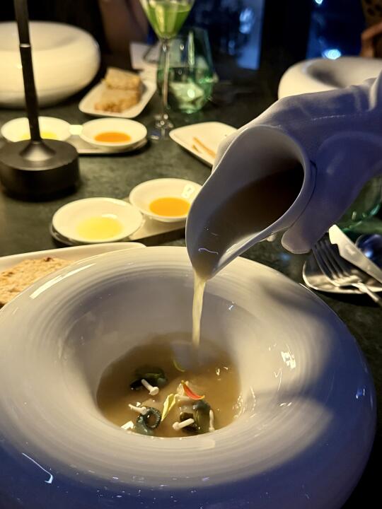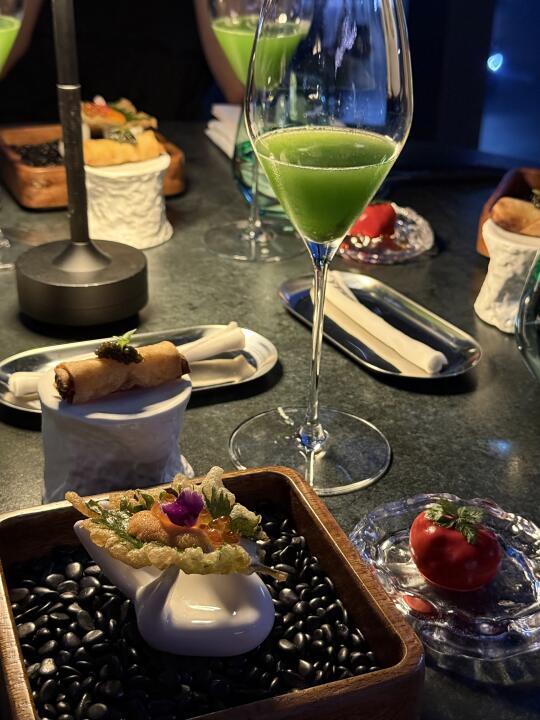 其实我最爱吃的西餐细分类当属意餐和西班牙菜 之前吃过最爱的西班牙菜除了在Barcelona就是在金泽 精致漂亮饭的西班牙菜omakase还是头一回吃 拍照可能板前更适合 table灯光很难拍出食物本色 手绘菜单的设计非常用心 菜品我最爱那道烩饭