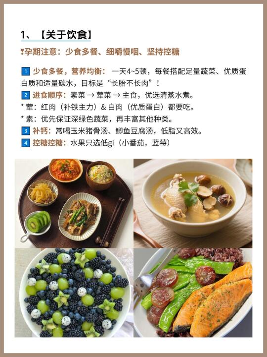 1️⃣ 少食多餐,营养均衡: 一天4~5顿,每餐搭配足量蔬菜、优质蛋白质和适量碳水,目标是“长胎不长肉”!