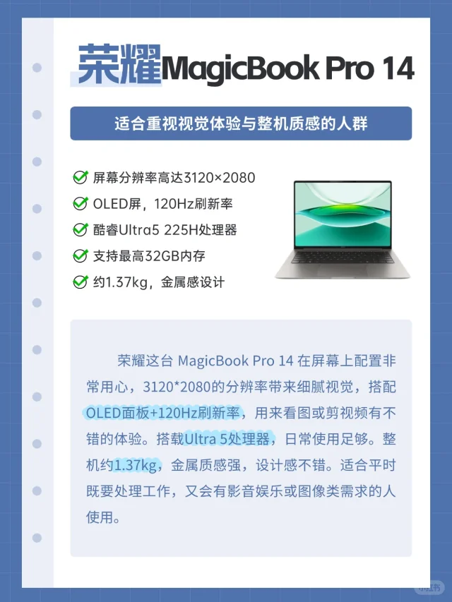 朋友经常飞来飞去,2kg的旧电脑背着太累赘,正好趁着最近大促活动,想让我推荐一台主打轻薄便携、续航强、屏幕好的笔电,我研究了不少参数,整理了这份5款热门机型推荐清单👇