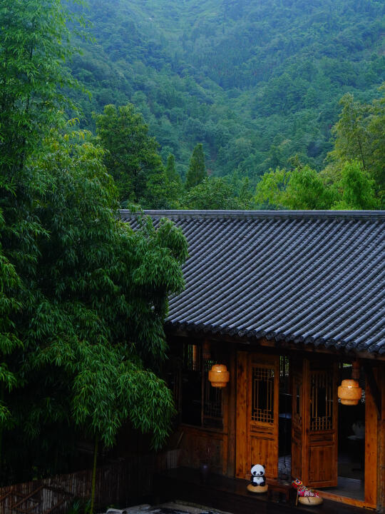 • 山野书屋听雨眠: 躲在全景书屋的落地窗前,捧一杯热茶,看着雨滴从屋檐坠落,手里的书半天翻不动一页——被森林雨景彻底治愈了。