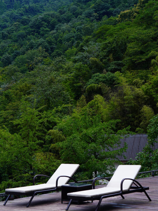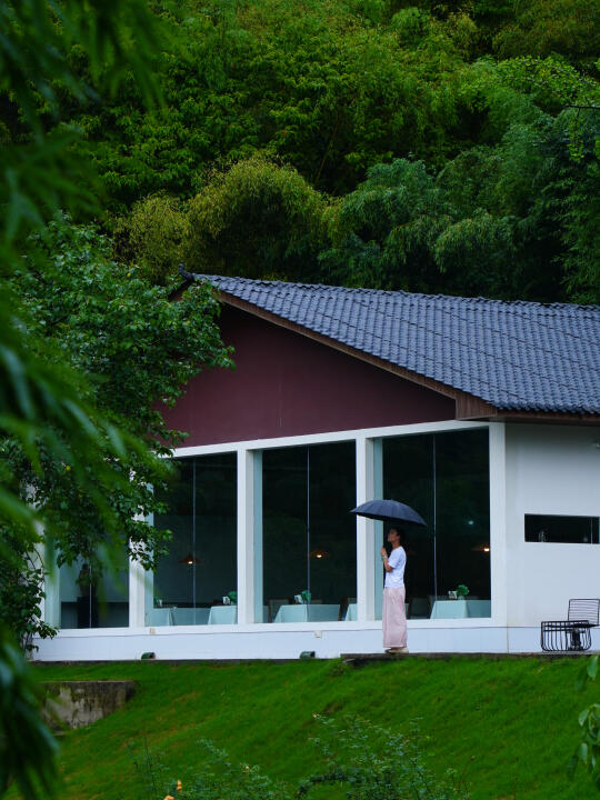 民宿就藏在绵延的竹海秘境里,12间房全都直面烟雨群山。窗外是流动的云海和层叠的森林画卷,窗内暖汤氤氲,泡着热泉听雨声…这才是真正的“躲雨”境界吧!