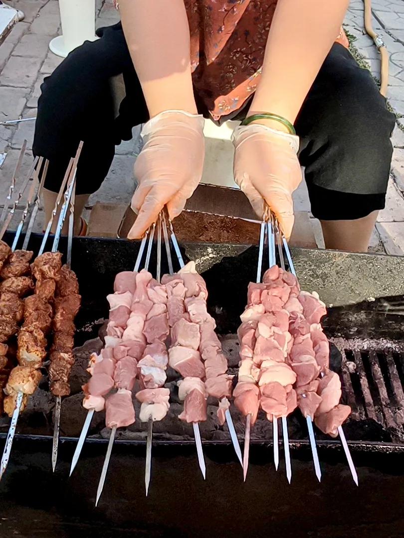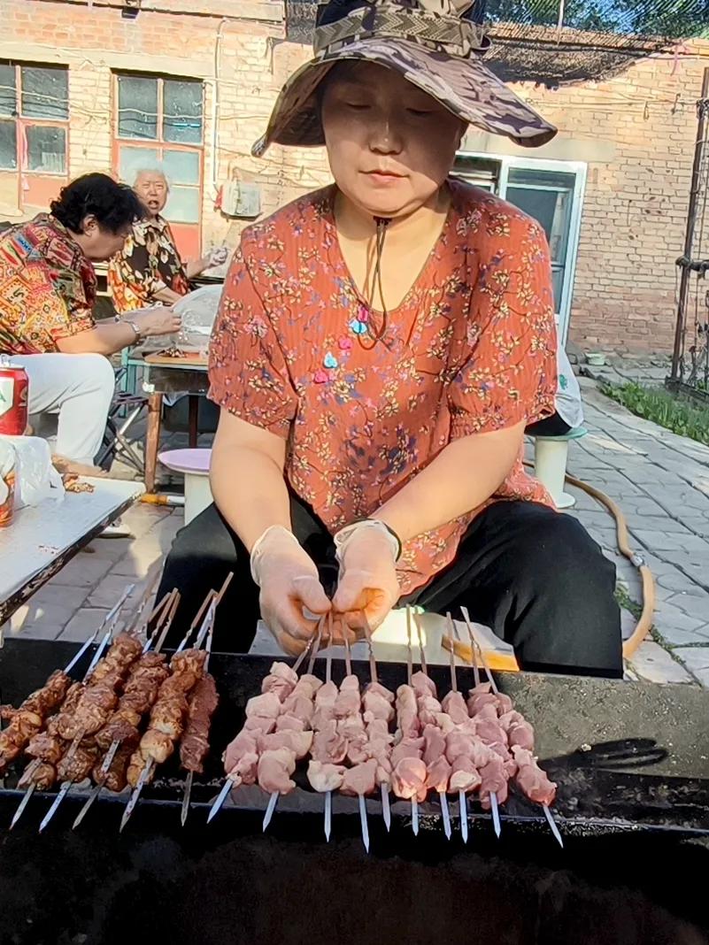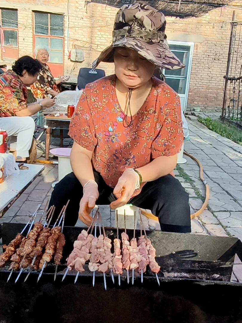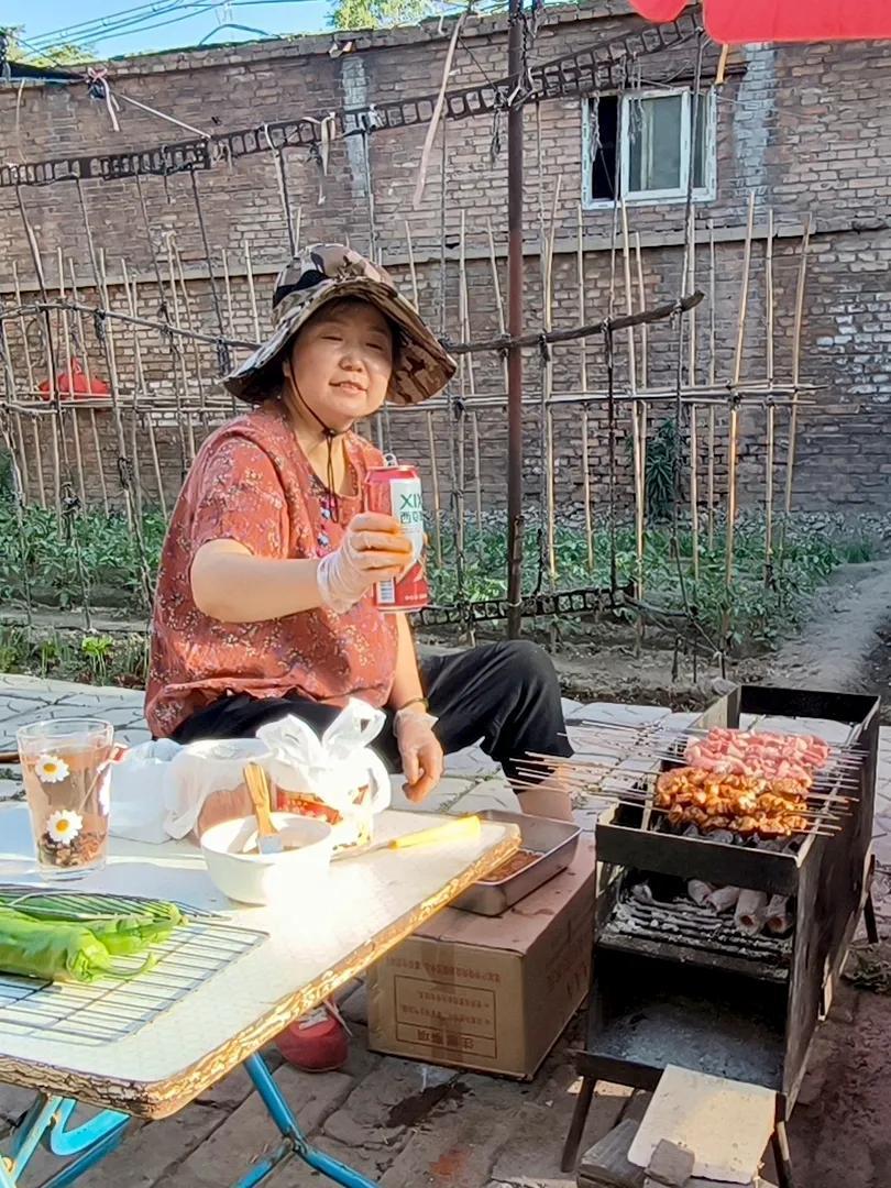 小院烟火🔥 炉火终于腾起来了,青烟袅袅,金红的炭火噼啪轻响,火苗活泼地舔舐着铁网。一串串羊肉、鸡翅,密密挨挨排上了烤架,油脂一触即热,顿时“滋啦”作响,油珠活泼地滚落,溅起细小的火星儿。浓郁的焦香混着孜然与辣椒面的辛香,乘着晚风,撩拨得人肚里馋虫直叫唤。 “快好了快好了!”烤串的叔叔朗声喊着,手里不停翻飞着竹签。围在旁边的孩子们早已按捺不住,踮起脚尖,眼巴巴地盯住那网上的美味。终于烤得金黄,肉串刚离火,几双小手便一齐探出,争抢着把滚烫的肉串抓在手里,烫得直跳脚,却哪里肯撒手?顾不得烫嘴,迫不及待地咬下去,满口生香,油花儿在唇齿间迸开,快乐也像那油花儿似的炸开了。 小院里笑声、咀嚼声、炭火噼啪声交织在一起,在夏夜清凉的晚风里打着旋儿。一轮明月悬在天上,无声地俯视着这一方烟火人间——那喧腾的热闹和温煦的香气,袅袅烟缕一般,慢慢升腾,又悄悄融入深蓝的夜空里去了。