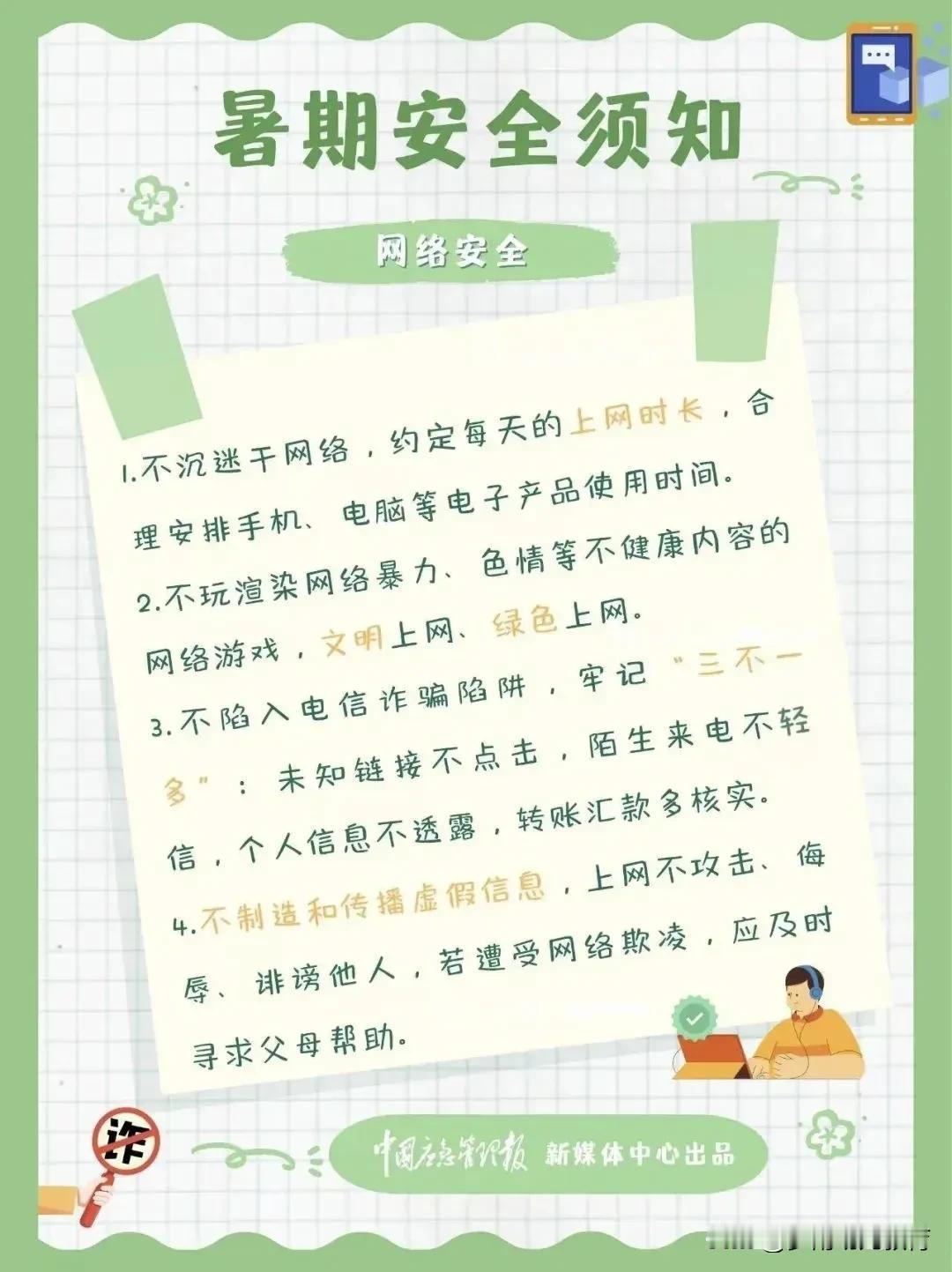 孩子们放暑假了,暑假也是安全事故高发期,所以暑假安全最重要! 让警钟长鸣!暑假安全无小事,为了让孩子们度过一个安全、祥和、快乐的假期,首先家长要做好监管责任,其次,要做好对孩子的安全教育。 时刻牢记安全第一,防范事故发生,防患于未然,请拿出时间,多陪陪孩子和孩子们一起认真学习以下安全教育内容。