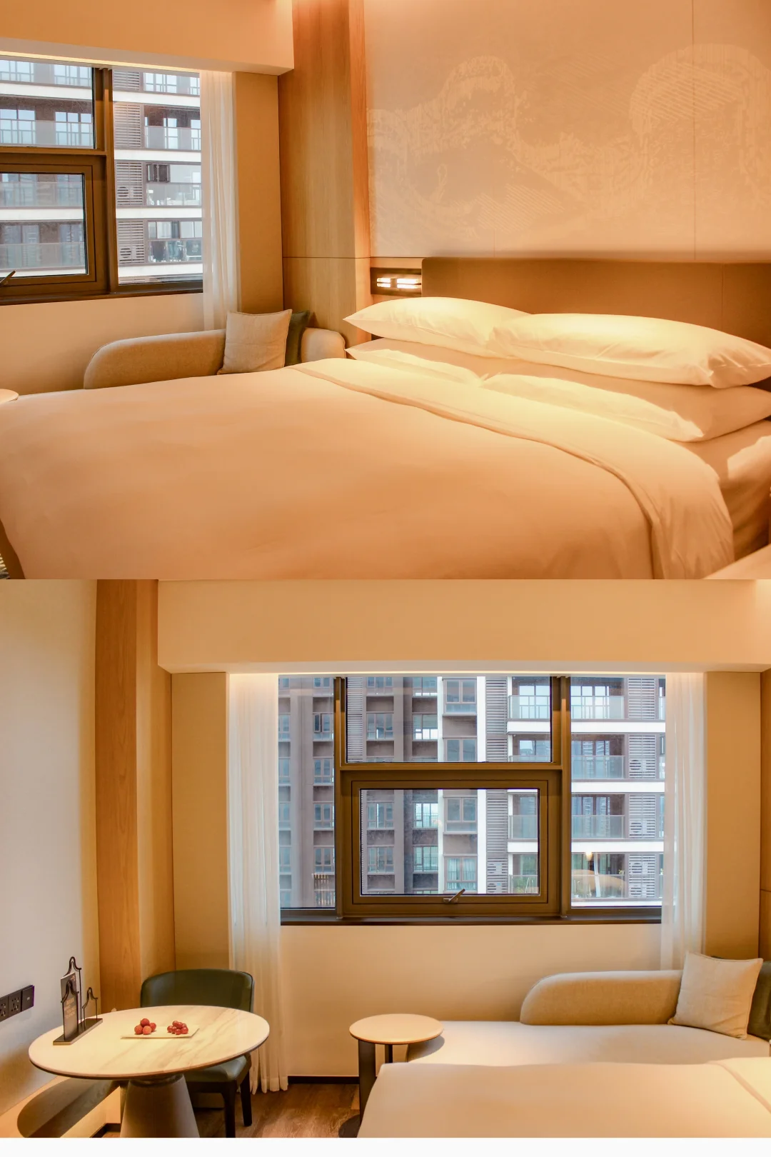 想不到北滘这座宝藏小镇,也藏着广府新潮与古早味。 周末48h,很尽兴~ ✅ 北滘体育公园:狠狠狠治愈的马卡龙色彩设计,松弛感回归,📸出片率200% ✅顺德自然科学馆:遛娃叹空调好地方,适适炎炎夏日🌞 ✅ 和美术馆:安藤忠雄的水泥诗篇!光影旋转楼梯随手拍都是大作 ✅ 岭南和园:亭台楼阁+非遗表演,石洞秘境出片~下午茶选民信老铺双皮奶,绝配~ ✅北滘公园:绿植包围,避暑休闲垂钓好地方 ✅ALSO: 潮流新地标,晚上在健身房湖边的真人演唱秀很棒 ✅悦然广场:shopping好逛,换季可薅羊毛 ✅酒🏨店:我们这次入住万怡,在北滘新城C位。花窗格,屏风…融入岭南园林风的大堂,推门就被设计感击中。 我们睡的是城景大床,简约风设计,玻璃窗外有绿油油的城市风光,去班味效果很正!!二楼的景观健身房我狠喜欢,觉后来个醒神运动,窗前可是满眼的怡人河景!洒汗后去隔壁来个元气自助早餐,nice💃💃! 「原味坊」的早午餐简直是快乐的灵魂‼️全落地玻璃窗👍👍,绿植环绕,蓝天白云触手可及的用餐环境,每一口美食都沾染了阳光的味道。自助餐出品丰富,样样都惊艳味蕾!甜虾,北极贝,现煎牛排,精美点心,佛跳墙……,快给我一个8G胃! 🍲寻味北滘list~ 👍筛箕三味鱼:顺德名菜,一定要尝尝 🌟瓦罉饭:柴火猛攻的煲仔饭! ✨黄但记陈村粉:非遗出品!XO酱炒粉、咖喱蟹捞粉香迷糊了 ✔️君兰河堤夜市:宵夜出摊的烟火气! 💡 我的行程安排: Day1️⃣:北滘体育公园→顺德自然科学馆→岭南和园→北滘公园→hotel→三味鱼晚餐→ALSO Day2️⃣:酒店早午餐→和美术馆→悦然广场收尾!