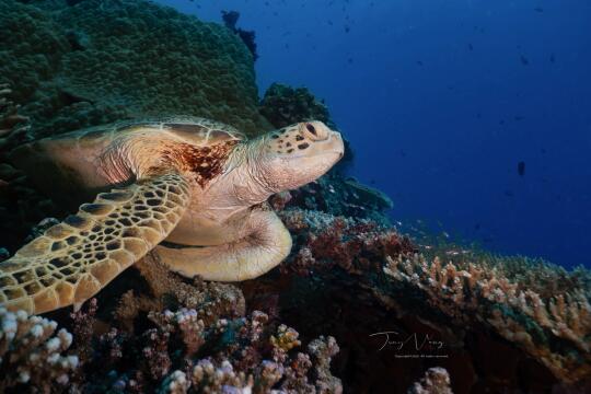 而东南亚,绿海龟则要常见很多,几乎每潜必有[doge]这一趟怎么也得看了二十几只。很喜欢p2这张鱼礁上的环境照。