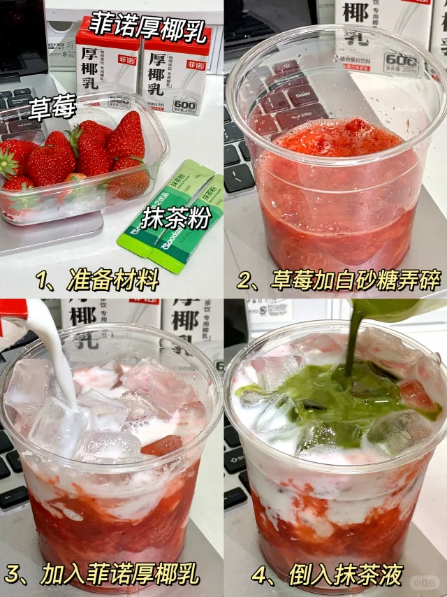 食材:200g菲诺厚椰乳、草莓、抹茶粉(图里有做法!