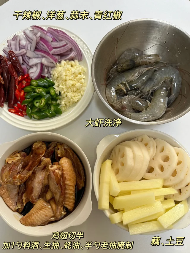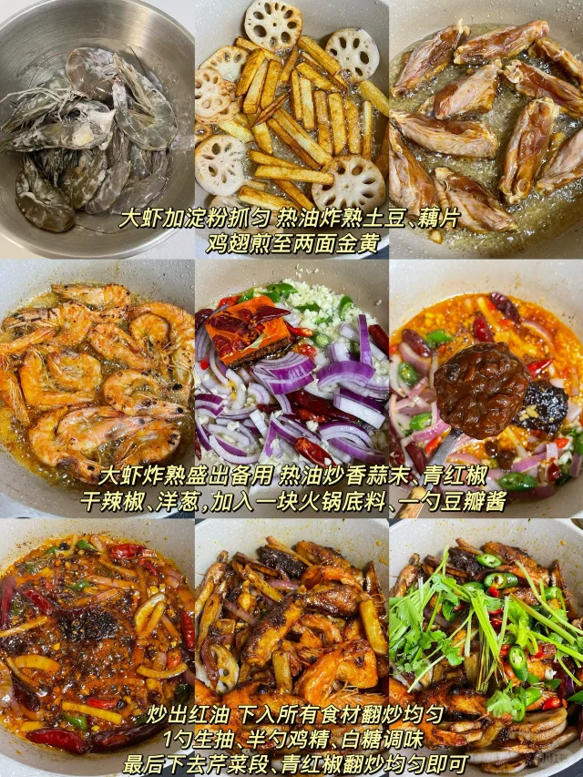 自己在家做干锅虾料太足啦!! 麻辣鲜香!!好吃到嗦手指… 炸过的大虾超酥脆 一口下去咔滋咔滋 鸡翅外酥里嫩 再加上爱吃的配菜 香香辣辣太过瘾啦!! 详细步骤如图⬆️求你们赶紧去做!!
