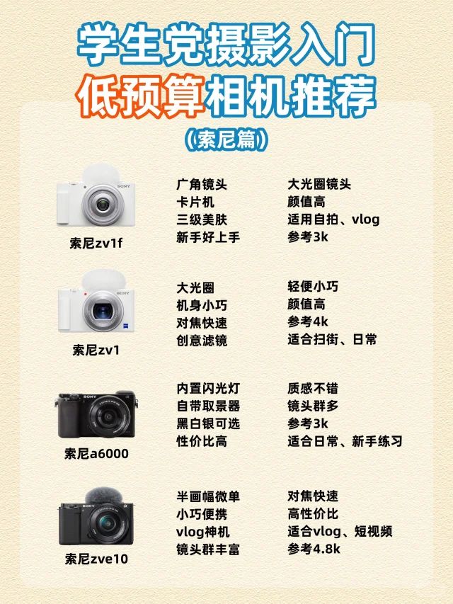 很多新手小伙伴经常向我诉苦,说学生党预算有限,哪些相机性价比高一些呢❓
