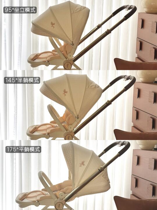 等宝宝6个月后可无缝衔接婴儿车,60cm高景观婴儿车,推出门宝宝看的高视野好,推车也是可三档调节的,宝宝可坐可躺,非常实用。