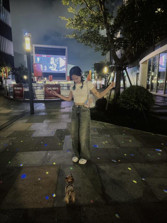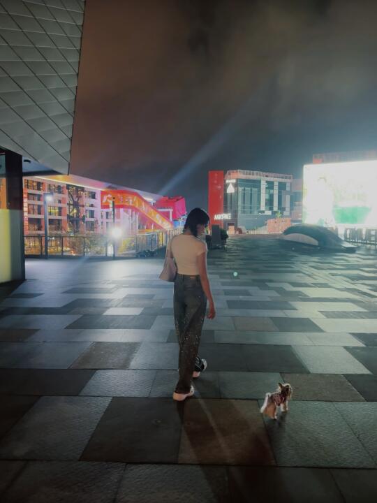 家里蹲了一周,终于不下雨的晚上,赶紧带小狗撒撒欢
