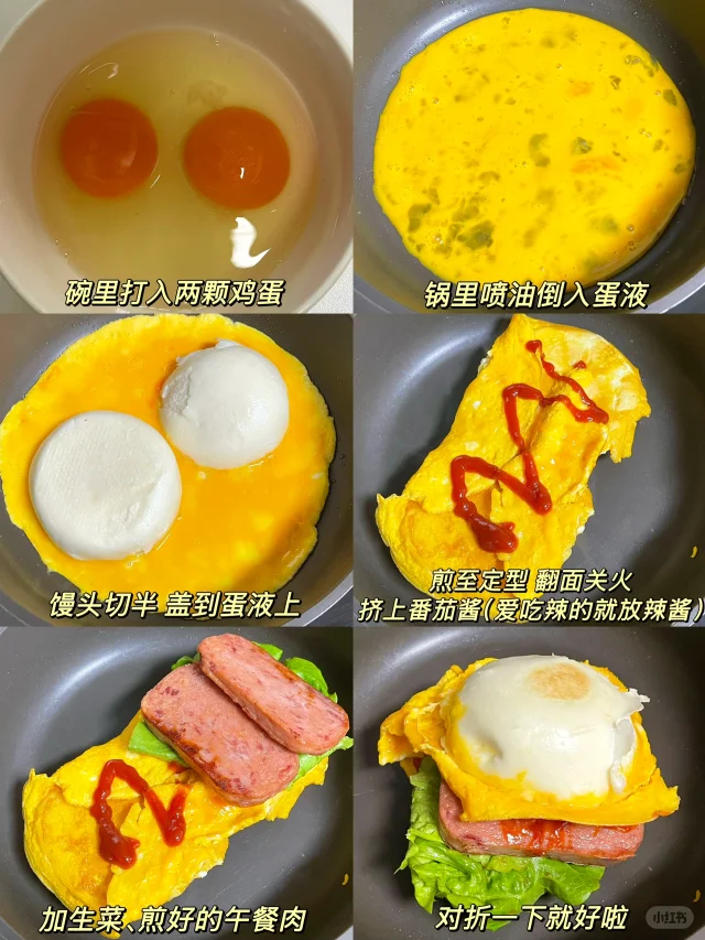 馒堡永存!是中国人自己的汉堡!! 早餐来上一个太舒服啦 好吃顶饱 蛋白质蔬菜碳水都有! 做法超简单 几分钟就可以搞定!! 食材:馒头 午餐肉 生菜 鸡蛋 做法如图⬆️真的巨巨巨好吃 要是冷馒头 可以空气炸锅烤一下再吃 更酥脆!!