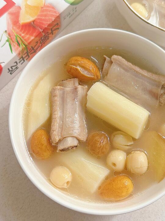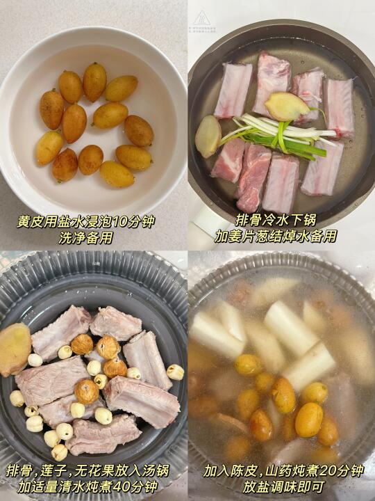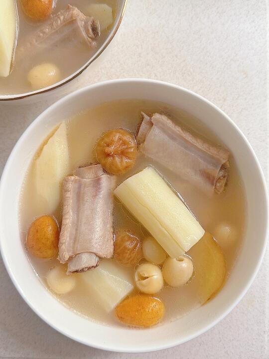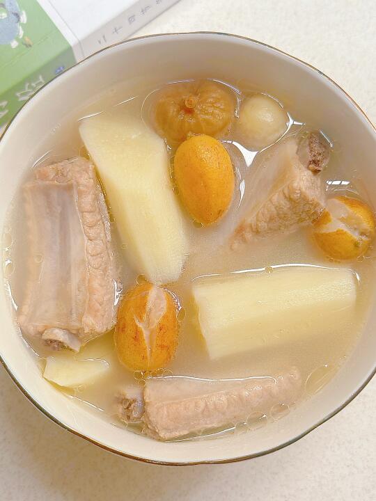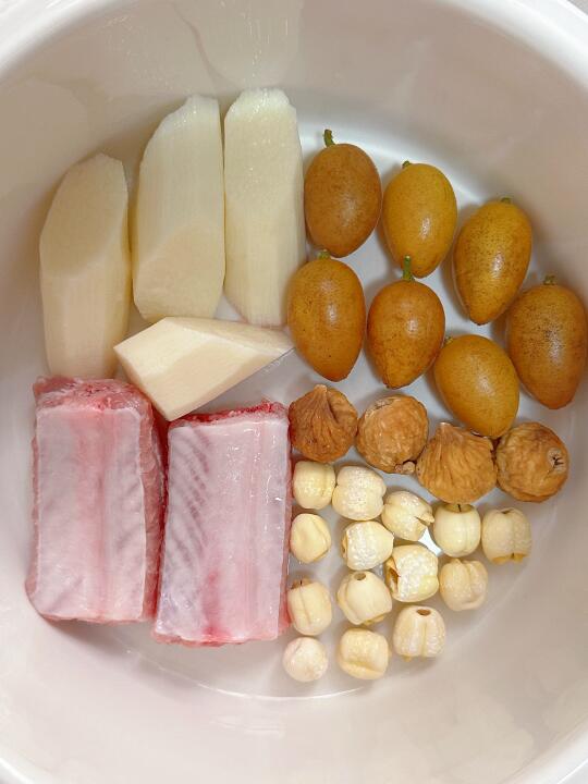 排骨半斤,山药半根,黄皮10颗,无花果5个,莲子10颗,蜜枣1个
