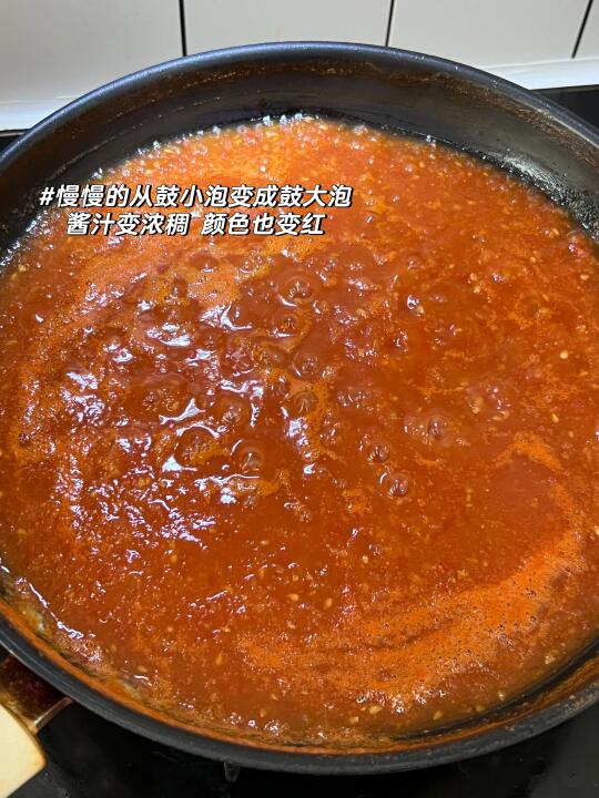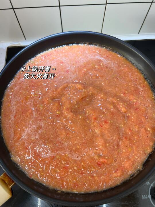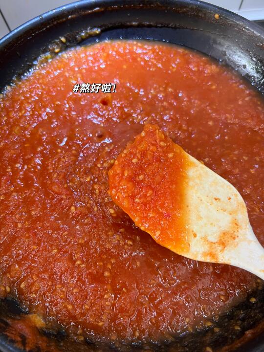 熬番茄酱的方法查了好多种,有熬料油的,有提前就加洋葱的,加香叶的。我用的最简单的方法,就是番茄➕糖,最后熬好味道也不错~