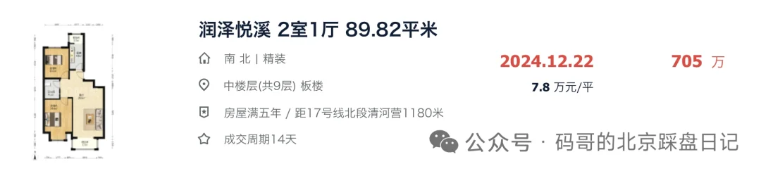 ① 930出政策前夕,价格是历史最低点,相较于2022年的历史高点,两居绝对跌幅在150-170万左右,跌幅比例20%,这个回撤比例跑赢了北京大盘,同时也跑赢了清河和回龙观的众多次新小区。