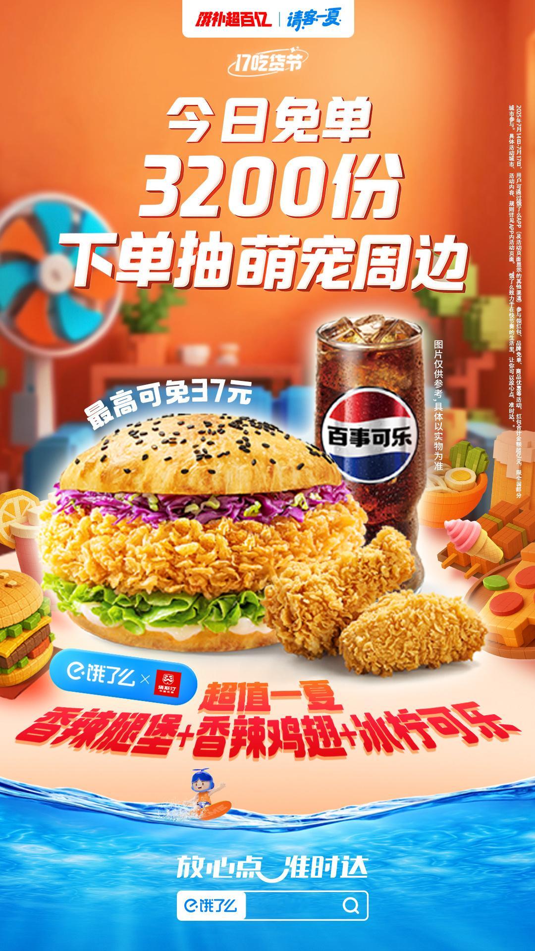 趁着活动提前买好一周口粮,能省不少呢!不会买的uu们速来看这个攻略!主线决定好吃啥,趁着活动价入手!然后定好闹钟冲17场大牌请客免单专场最高免39元和五场0.01元茶咖通兑券!日常上饿了么搜【17吃货节】,17赢17元免单卡、抽37元免单红包,必爆18.8;还有0.7元特供限量版超级吃货卡,以及暴吵萌厨游戏请客免单卡~饿了么17吃货节,省心更省钱,放心点准时达~这波饿了么请客又赢了!饿了么饿补超百亿 17来赢37元免单