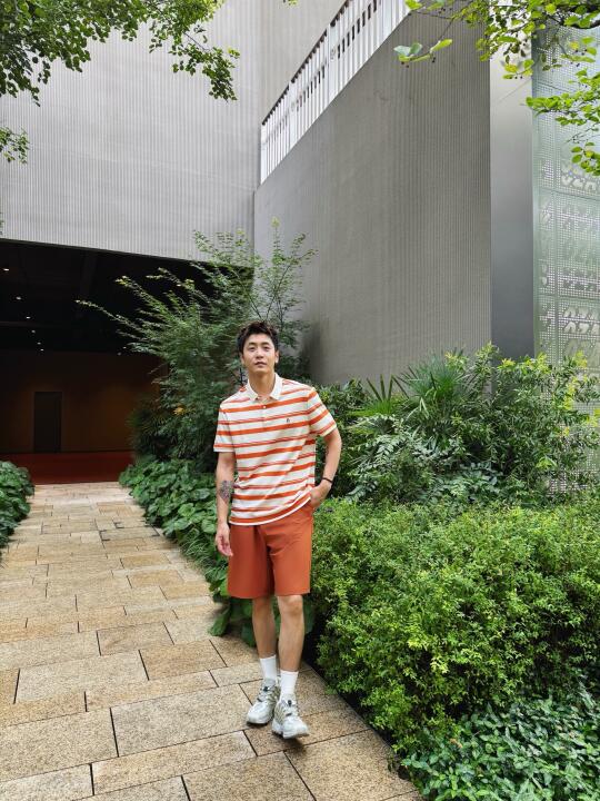 还好今天出门穿的是新买的这套,T恤轻薄透气的面料+短裤双重凉感工艺,偶尔有风吹过来的时候格外舒服,哪怕是正午的阳光也不再热烈。