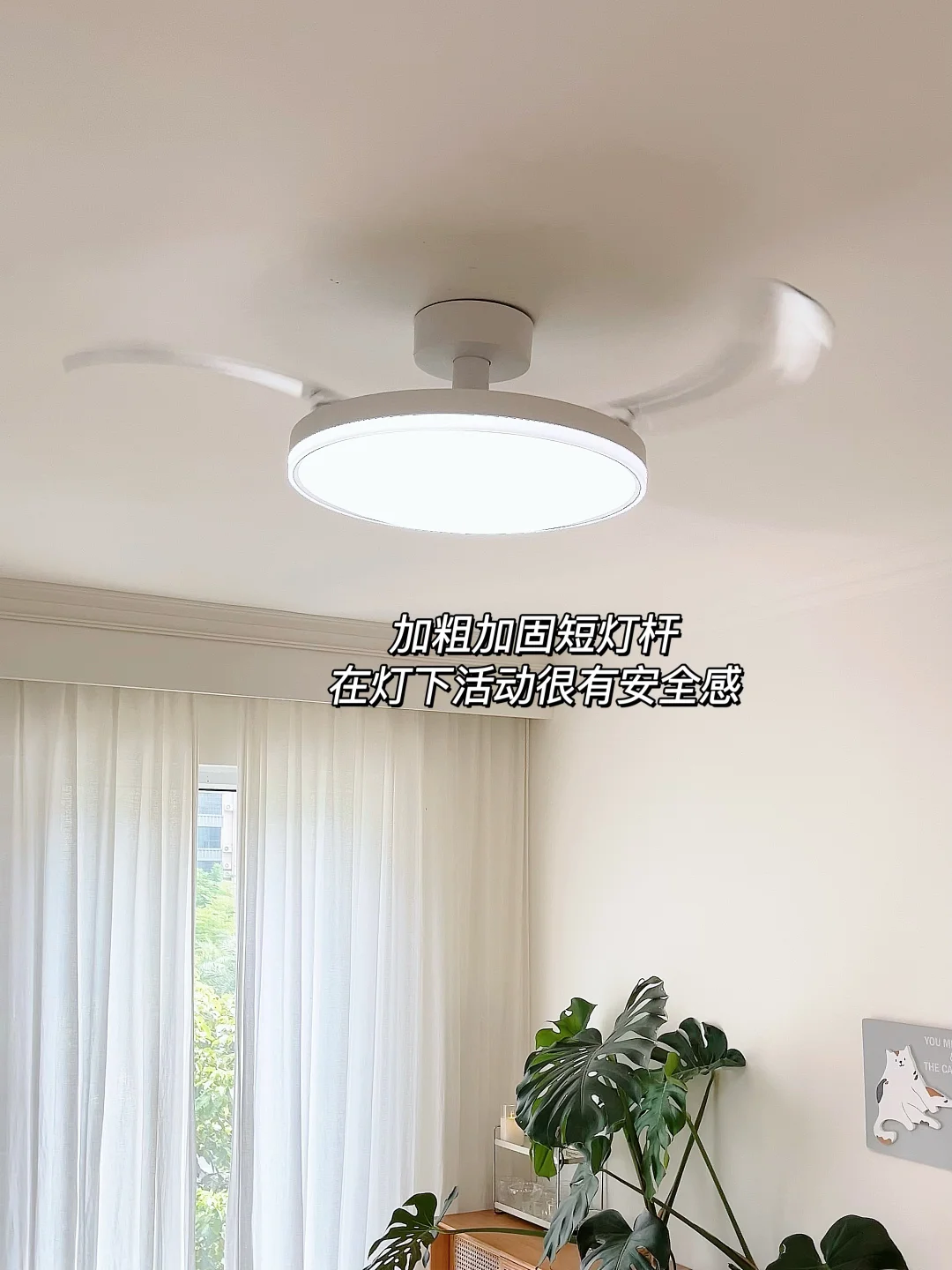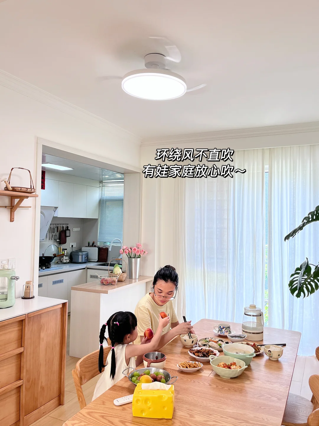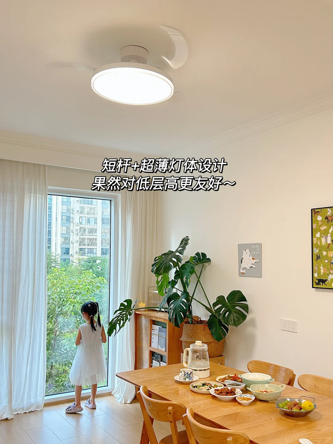 ⚠️之前吃过传统吊扇灯的亏,尤其知道风扇灯没选好就很容易踩坑!😱比如:直吹头顶很不舒服、细长吊杆转动时就摇摇晃晃、杆子太长压层高还容易碰头、难清洗、开着很吵嗡嗡响等等!