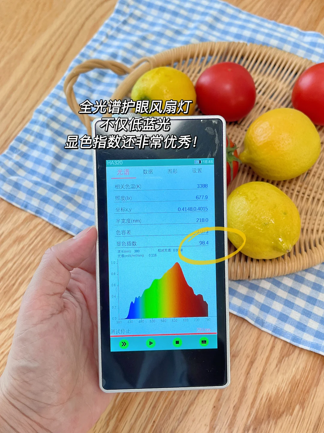 它还是全光谱的护眼风扇灯,这样的灯光下用餐更舒服!而且它不光是RG0低蓝光,显色指数还高达98!有娃家庭想要装在儿童房也很合适~