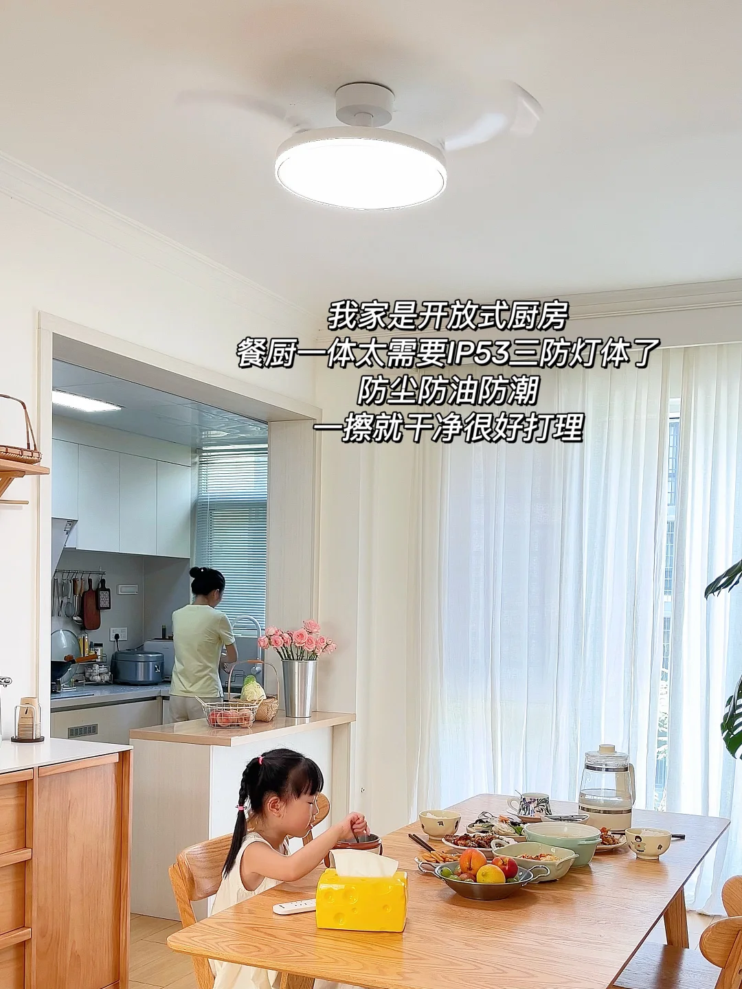 我家是开放式厨房,厨房餐厅是一体的,所以我真怕那种难清洁的风扇灯!