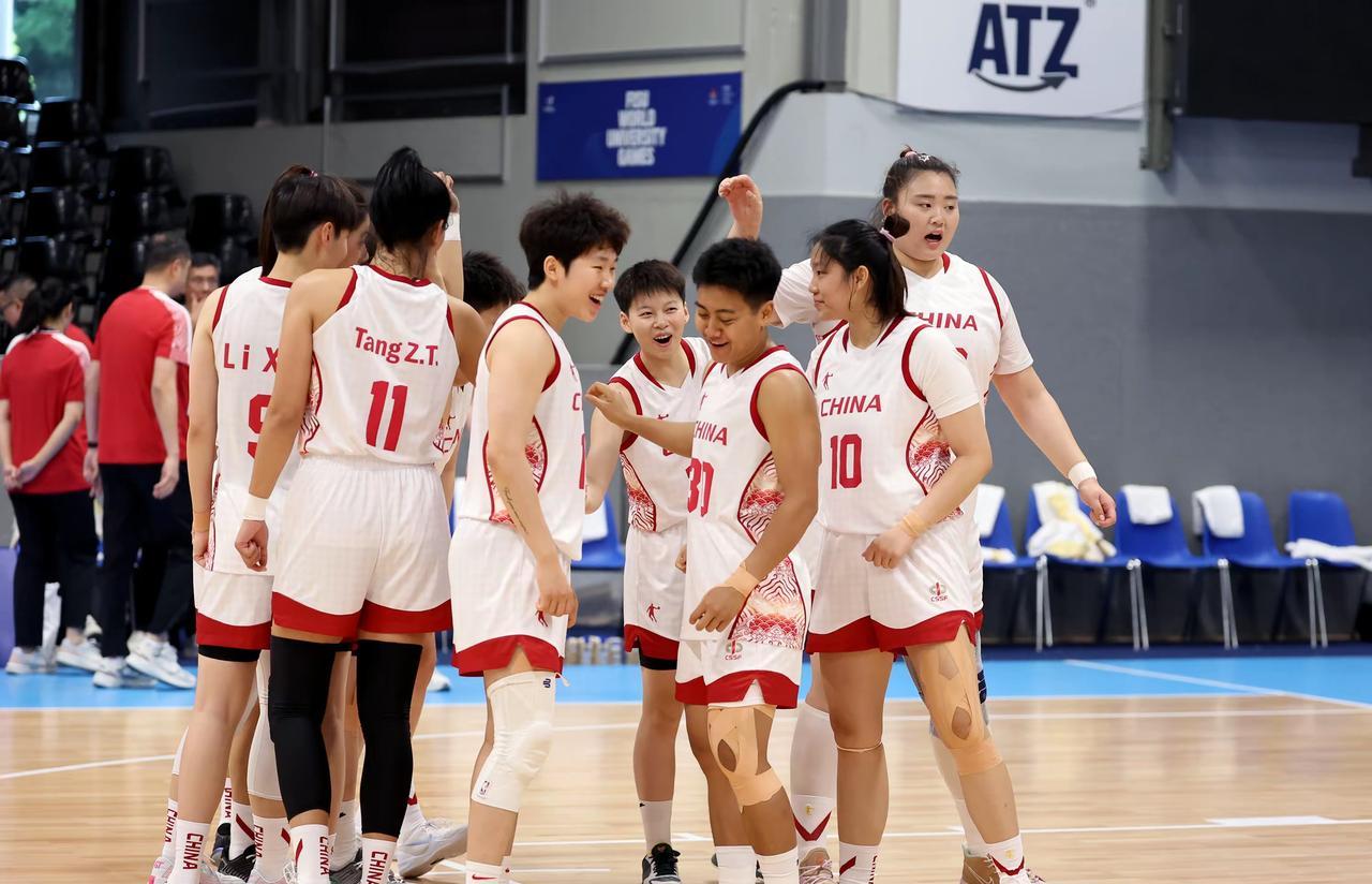 就在一分钟前,中国大学生女篮再下一城! 远在欧洲德国境内参与第32届大运会的中国大学生女篮面对小组赛第二个对手罗马尼亚大学生女篮 非常轻松的以82:49战胜了对手。 按照这个趋势,中国大学生女篮打进淘汰赛会很轻松。 毕竟小组赛三个对手,都是女篮领域名不见经传的队伍 她们分别是葡萄牙队、罗马尼亚队、智利队 实话实说,关注中国女篮多年,在世界大赛上从未遇到这三个国家的女篮队伍! 因此,这侧面足以证明小组赛对手较弱。 但是,咱们中国大学生女篮乃是卫冕冠军,所以淘汰赛阶段肯定会遭遇强敌,尤其是越到后面对手会越强。 例如美国大学生女篮已经放出话来,势必要夺取冠军(因为她们已经很多届大运会没有夺冠了) 所以,希望咱们中国大学生女篮放下包袱,再接再厉,勇往直前,战胜一切对手,再登冠军宝座!