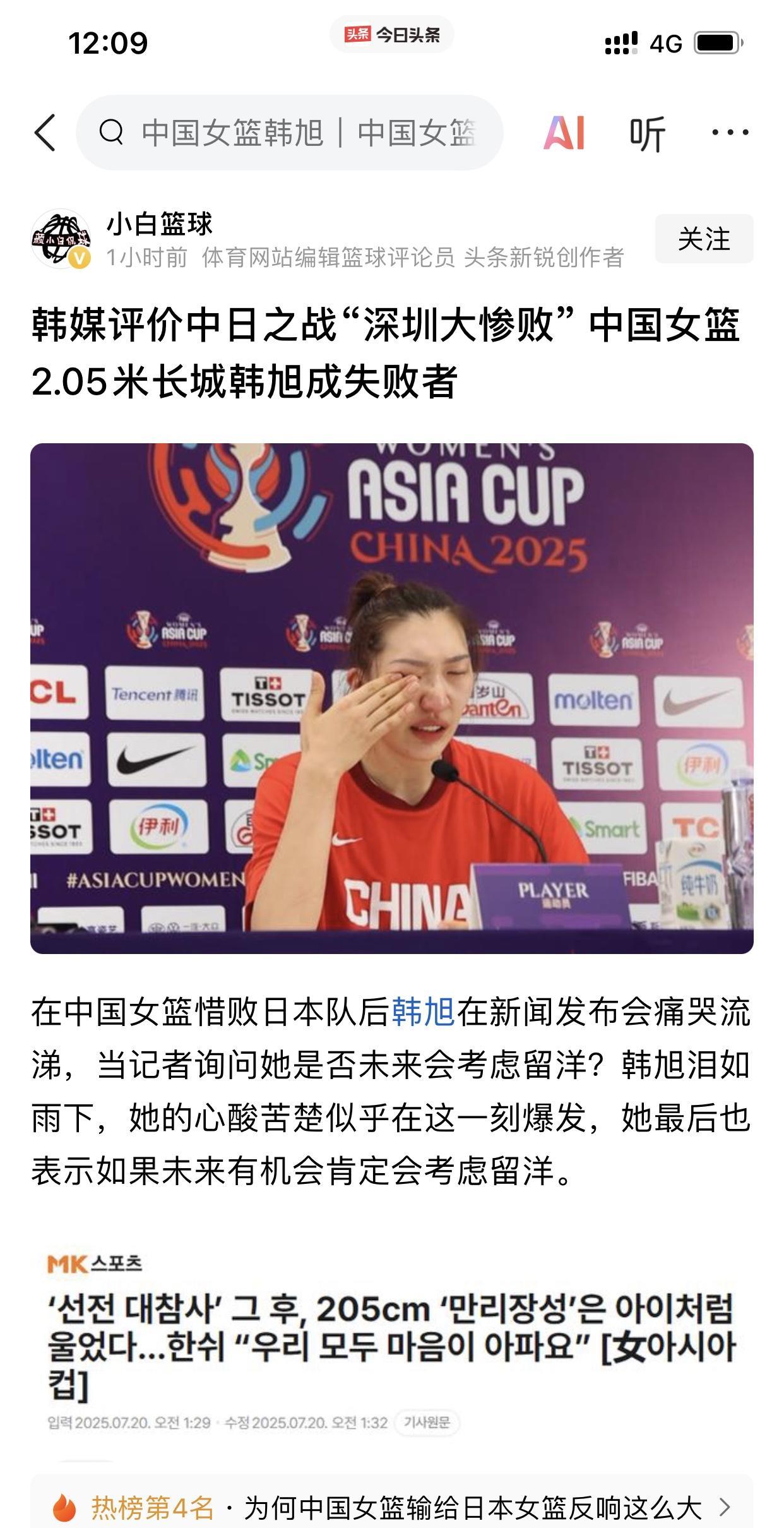 我真的没看不懂宫鲁鸣的这次操作? 就是昨晚输给日本女篮后,赛后发布会上所亮相的球员竟然是韩旭? 按照常理,都是得分最高的那个球员与主教练一起亮相,去应对媒体的采访! 因为从热身赛到小组赛,前面那么多次的发布会现场都是这样做的! 这次输了,还是关键性的半决赛输给小日本,竟然带上得分不是最高的韩旭去面对媒体,导致韩旭泪洒现场,这是个什么操作? 难道输给日本,韩旭应该担责?(我看到网上不少人说韩旭怎么滴,仿佛韩旭真的应该为输球担责?) 要是说韩旭有错误的话,那输给日本女篮,其她球员更是错上加错! 其实,我原本认为输给日本,不怪球员,只怪主教练指挥不当 而宫鲁鸣这个操作,让我不得不觉得,他是有意的让韩旭来承担错误,只是没有明说而已! 不然何至于那个时候,带着韩旭上场?就应该带着上场时间长表现最差的那个上场!