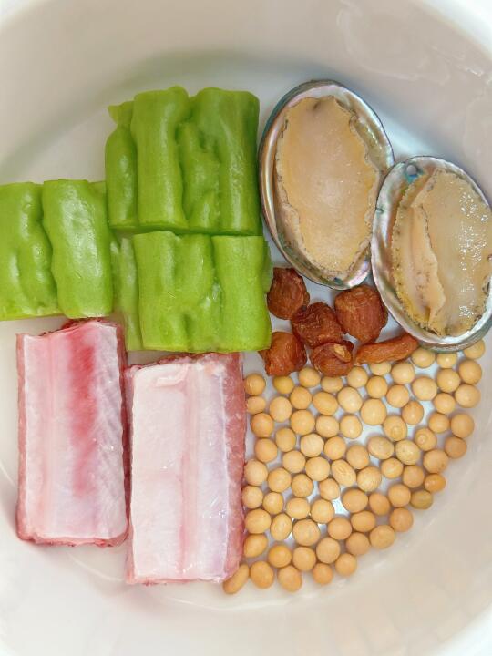 鲍鱼,排骨,黄豆,苦瓜,蜜枣,玉竹,桂圆
