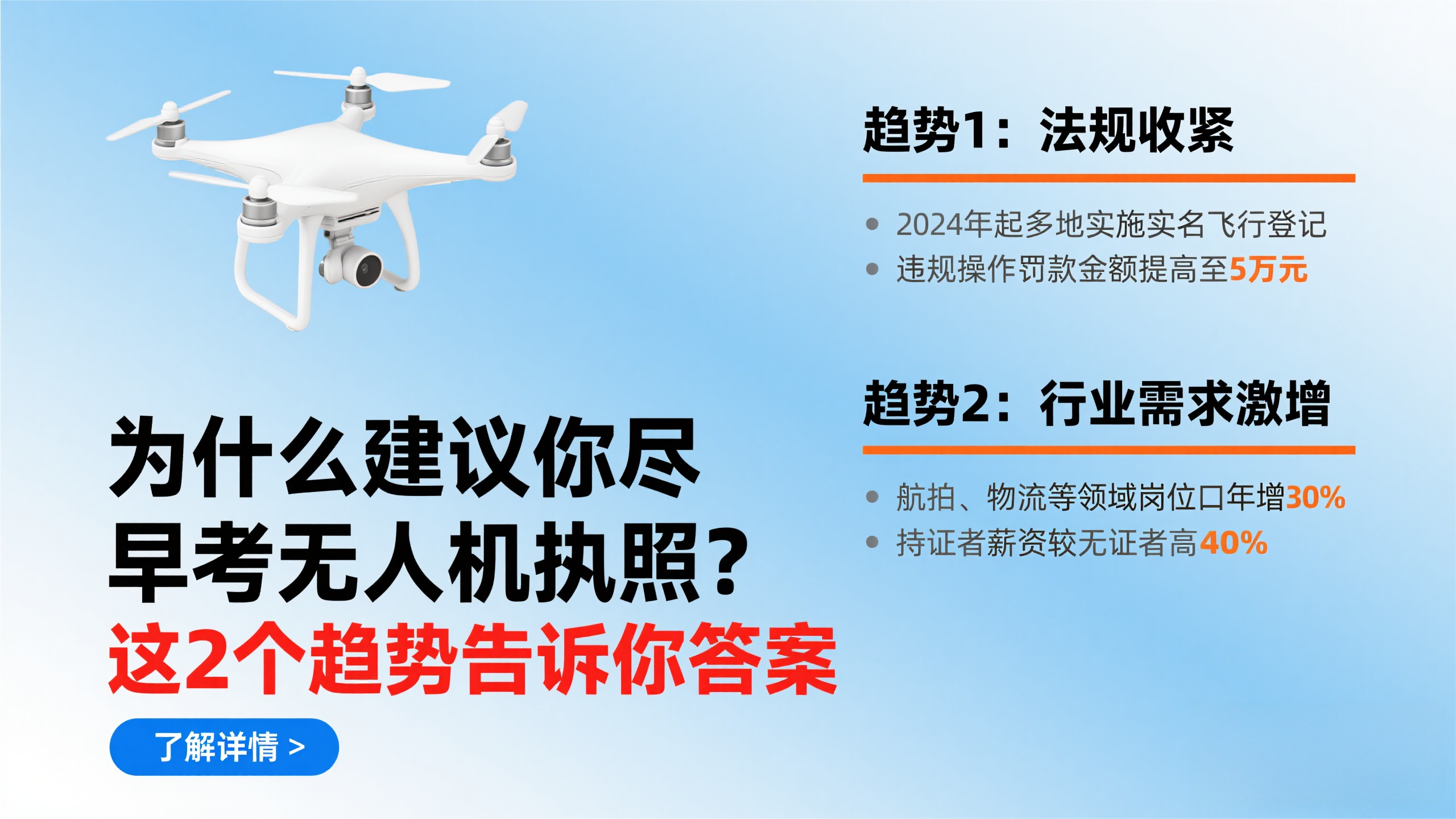如果你对无人机感兴趣,或者正在寻找职业新方向,现在就是考取执照的最佳时机: