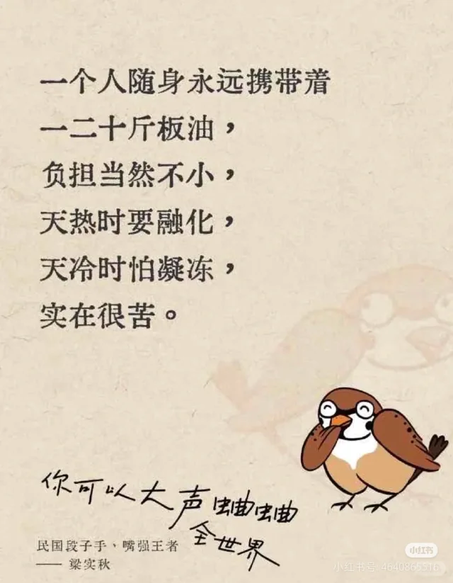 🙃工作只是谋生的手段,千万不要因为工作而左右情绪。 🙃要做到精神上不受力,无论外界发生什么,你都不要太难受。依然每天热情地投入到生活和事业里。 🙃什么叫做受力呢?——总活在别人的眼光里,别人几句难听的话,就会影响你的思绪和行为,总在消耗自己。 / 真的说得太对了,就是很难做到,😭总是很内耗,不自觉的去关注别人的生活,然后会进行对比。 但其实,我们任何时候,都应该高高置顶🆙自己的感受,专注自己的目标,勇敢去争取去抢夺我们想要的一切。 ————🌷 工作焦虑自救 / 我们很多女孩子从小接受的教育很奇怪,总在鼓吹【听话】、【懂事】、【老实】、【善良】【同理心】这些词。 但我们有时候可以不那么nice,在这个光怪陆离的世界,我们要懂得释放自己的攻击性和野心,勇敢去争取去抢夺我们想要的一切。 (📍当你特别内耗时,可以来看看这段话,会让你重新获得些平静和力量: “对不值得的一切,我都可以选择——精神上不受力。无论外界发生什么,我都不要太难受,依然每天热情地投入到我想要生活和事业里。”) / 📖想起梁秋实在《你可以大声蛐蛐全世界》里面说的: 🌷“生活处处是槽点,你得蛐蛐全世界。” 🌷“人生之目标,不在幸福之追求,而在痛苦之避免” 🌷做人呐,最重要的是开心啦,毕竟这人间,是苦乐参半嘛!” / 😌愿我们都能活出自己想要的人生,而不是活在世俗的规则里。 ————————🌷 ps,附赠“恶女”的生存法则: 我不允许自己被无视被欺负被伤害被差别对待 我是勇敢的有野心的愤怒的坚韧的强壮的闪闪发光的 你的话没有道理 我不会听话 你不是个善良的人 我不会对你善良 你不尊重我 我也不会尊重你 你的游戏规则很差劲 不好意思 我不玩了 我自己来制定新的游戏规则 人生智慧 深度思考 🧘‍♀️闪闪发光的恶女们,请给我凶猛地上桌!!! / smart is new sexy 一起加油,共勉之~ 欢迎关注,这里会: 1、日更闪光文字/经典书摘 2、我相信,人是可以越变越好的 3、适度思考、连接现实、看完开干!
