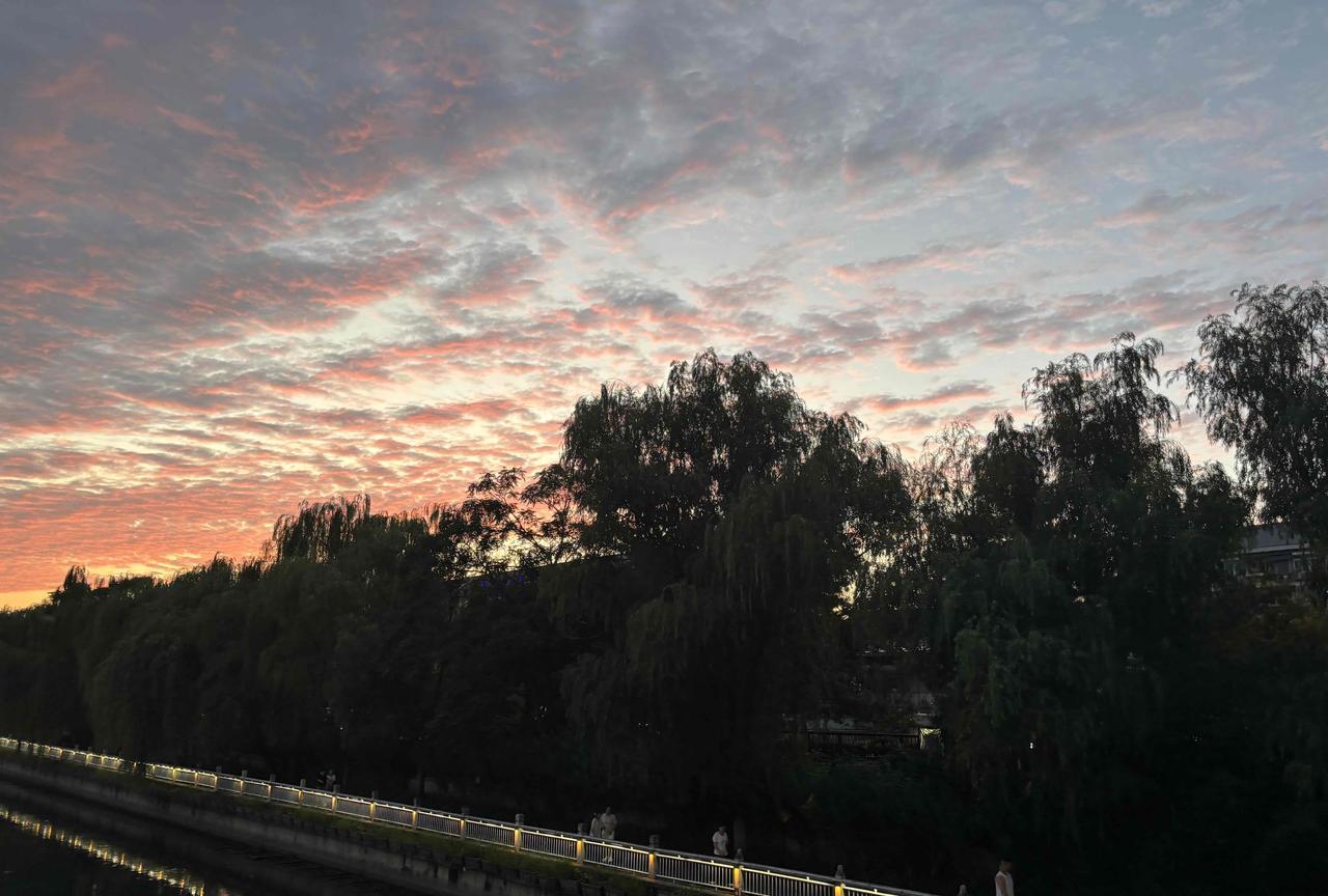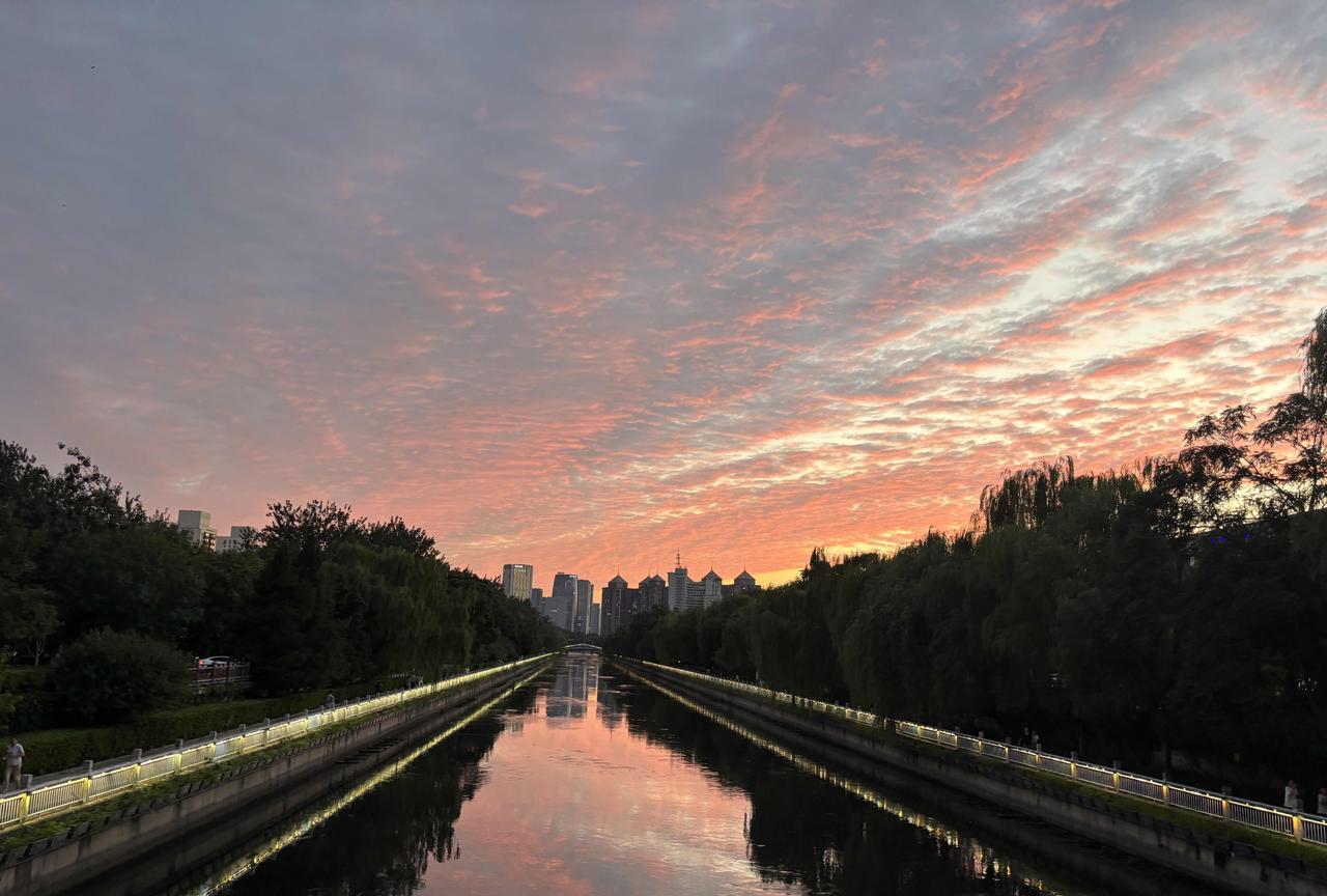 火烧云的形成原理: 火烧云的红色调源于太阳光的瑞利散射原理。当太阳接近地平线时,光线需穿透更厚的大气层,蓝、紫等短波光被散射殆尽,而红、橙等长波光穿透力强,将云层染成绚烂的红色或橙色。