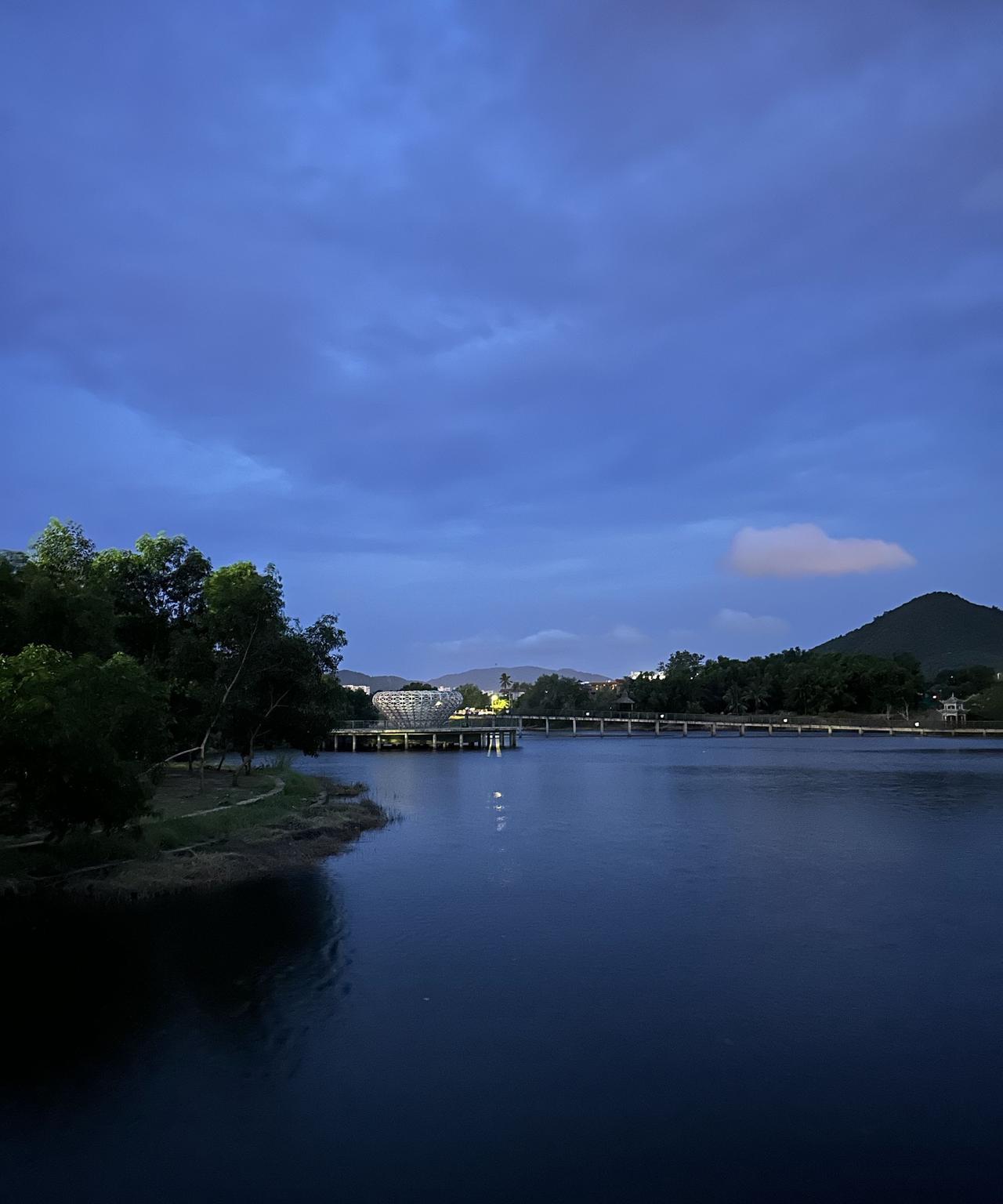 傍晚时分,收到女儿的信息:麻麻,我登机了; 今天白天汕头到深圳的动车都停运了哈哈哈; 我昨晚还买了一张广州到北京的高铁卧铺,打算今晚要是不飞了我就高铁回去; 但是,我是个幸运鹅,看起来可以赶在台风前回京啦; 已经按时登机啦,这飞机比我飞墨尔本时候那个好,比那个宽敞,而且旁边没有人; 太好啦…… 哎呀,我都忘了这档子事儿。 外面风雨欲来风满楼。此时,有一个在外奔波的人,要日夜兼程赶回去上班。我不知道她的行程安排,更不知道会有这么多的横生枝节。 看到广州部分地铁停运,机场大部分航班延误、取消的消息。越思量,便有惭愧心生起。 惭愧的是,明明可以积极地对待一件事、一个人,但偏偏懒得去行动。尤其在对待女儿的事情上,一直都是不做与不说的原则。 她每次出行,无论走到哪里,除了晴空万里,也会披风戴雨,波折不断,她却乐此不疲地飞来飞去。 这让我知道,世界上没有任何一种收获是容易的,包括收获欢乐。 或许,尝试体验的越广泛,越能明白自己真正想要的是什么,不至于这山望着那山高,梦想着干这干那……她把梦想变成了现在。 平时,我们各忙各的,互不打扰。而我呢,也做好了另一种准备,那就是当她需要的时候,我能平静地接得住就好。 时间久了,发现自己成了一个"甩手妈妈"。 曾经以为自己很笃定。世间种种,貌似不感兴趣,没有热情,其实还是有执着,只是执着得不太明显而已。 对于女儿的行动,还是会升起来一些牵挂、担忧。 怕她吃苦,又怕她娇气;怕她太强,又怕她脆弱;想历练她,又怕她受伤;想让她自由快乐,又怕她经历太多风雨雪霜…… 为人父母,即便手放下,心也放不下啊。 好在,女儿知道我的心思。每次都主动聊天,聊自己的心情,聊她的工作,聊她闲时干什么,聊她的开心和难过……耐心又认真,细心又体贴。 我给予的回应,便是"我在这里"。 我发现,也没有必要执着于自己是哪种性格。什么高敏感人格,什么讨好型人格,说得实在一点,再怎么标签化自己,也无法解决真正的问题,无非是让问题复杂化,然后给自己一个不去解决的理由。 知道自己想要什么,知道自己能做什么,内心锚定,更重要。 看她发的那个机舱内的照片,很宽敞,以为是商务舱,原来不是。就说:挺好的,到家告诉我哦,平安~ 她回到:好嘟。马上起飞了。 看了下时间,晚上6点半。 风卷着乌云,大片地侵食着蓝天。要下雨的样子。 简单吃了晩饭,拿上雨伞,走路去湖边看看。 通往湖中的小径、通往栈桥的路口,都拉上了警戒线。但见月沉云影,树影森森,并无一人。 举起警戒线,一闪身走了进去。偶尔有散步的人,从身边走过,心里有了几分安全感。 风迎面吹来,拂动的是草木,也是躁动的心。暮云幽蓝,几朵淡粉色的云点缀其间。岸边的一片椰子树,都带着一股说不出的灵气,它们听着水声生长,似乎更加葱郁。 一只大鸟站在草丛里,看到我来,悠然挪动着步子,并不飞走。它大概想宿在这里。我用手机对着它,太模糊了,终究还是没拍下来。 我也只是短暂停留。这山带不走,这水带不走,只是带走了此刻的某些影像,某些凝望。 忽觉颊上一凉,接着胳膊上又是点点沁湿。抬头看时,天阴得很重,疏疏落落的雨点已洒落下来。 预料中的风雨就要来了。 晚上9点20分,收到女儿落地北京的消息。我撑开雨伞,慢慢往回走。 9点50分,她搭上车,和我聊着: 上车噜,往家走了; 一回到北京,这个城市街景,跟广州还是差别很大; 这些大城市的城中村跟商业中心都赛博朋克的互生在一起。广州满大街城中村,北京都是些老旧楼,但带着八九十年代机关筒子楼那个风。广州太多那种穿人字拖大短裤骑摩托车嚼槟郎城中村交织高楼大厦的生意小老板,北京是摇着蒲扇的京爷风,有钱有权但透着一股子"顽主"那种不在乎别人怎么看的自信; 中国城市里,上海最突出,城市风格气质完全不一样…… 我说:北京心理上让人踏实吧。 女儿话题一转,说:麻麻没去过广州吧,下次我们一起去住,这次住的酒店那一片就是岭南大宅。很精致,有点端着,有点港风; 其实,广州和三亚很像,汕头也跟三亚很像,真不愧以前海南也是广东的,确是一脉相承; 我说:是的,海南1988年才从广州独立出来,建立海南省的。 我在小区里走着,一面聊天。 10点半,她到家,拜拜立马上前迎接,围着行李箱转来转去。 我的心也踏实了。 夜色中的城市,更容易让人感受到现实与梦想的迷离氛围。既生动又让人感慨生活背后的风雨……大概每个人都能在其中看到一些与众不同的东西。 久居海岛,隐没了太久,无论广州还是北京,亦或其他地方,于我都是看远方 几张照片,几段话,就能让许多情绪沉浸到一个小世界里。仔细看完,这一刻,就是它带给你我的一份感动。 雨静静地落下,承载了太多的情绪。 那就什么也不说,一起听雨吧。 #头号创作者激励计划#